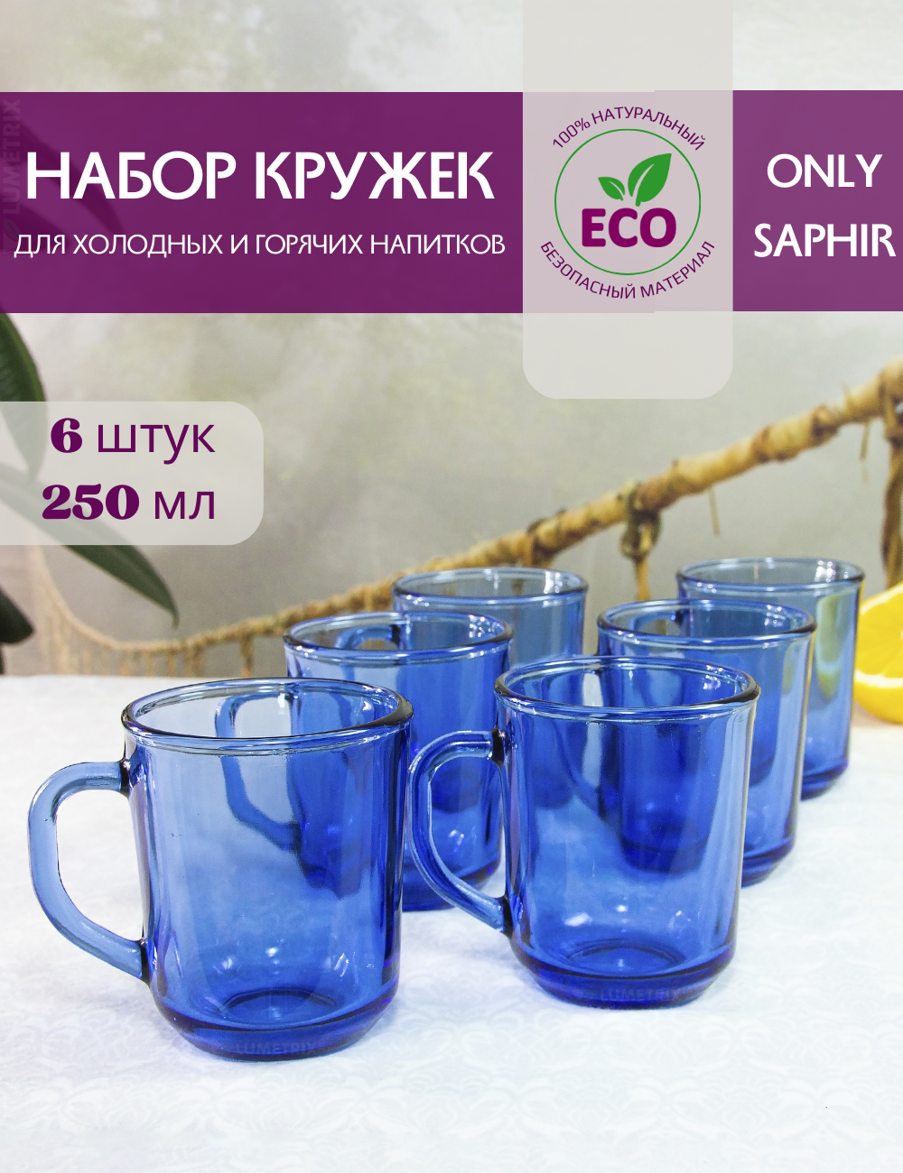 Купить Набор кружек стеклянных, 250 мл, 6 шт, для чая, кофе, Verso ONLY SAPHIR