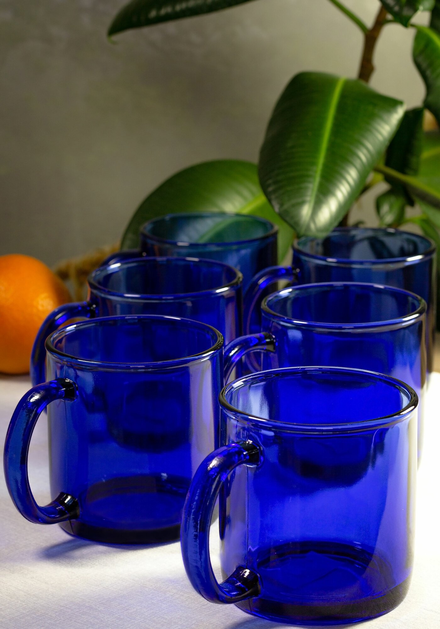 Набор кружек стеклянных, 350 мл, 6 шт, для чая, кофе, Verso SEA BRIM SAPHIR