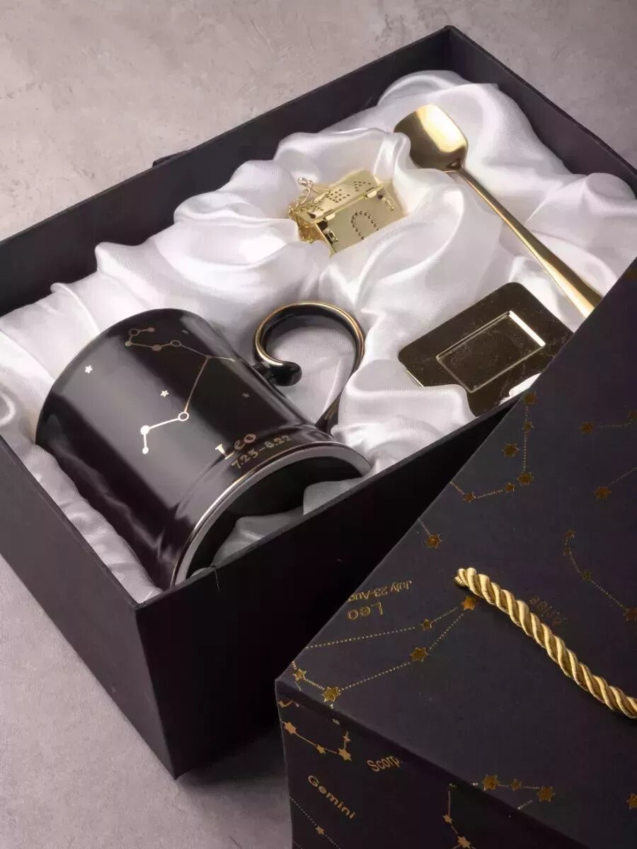 Кружка 360 мл с ложкой и фильтром Lenardi "Водолей" (подарочная упаковка) / 357828