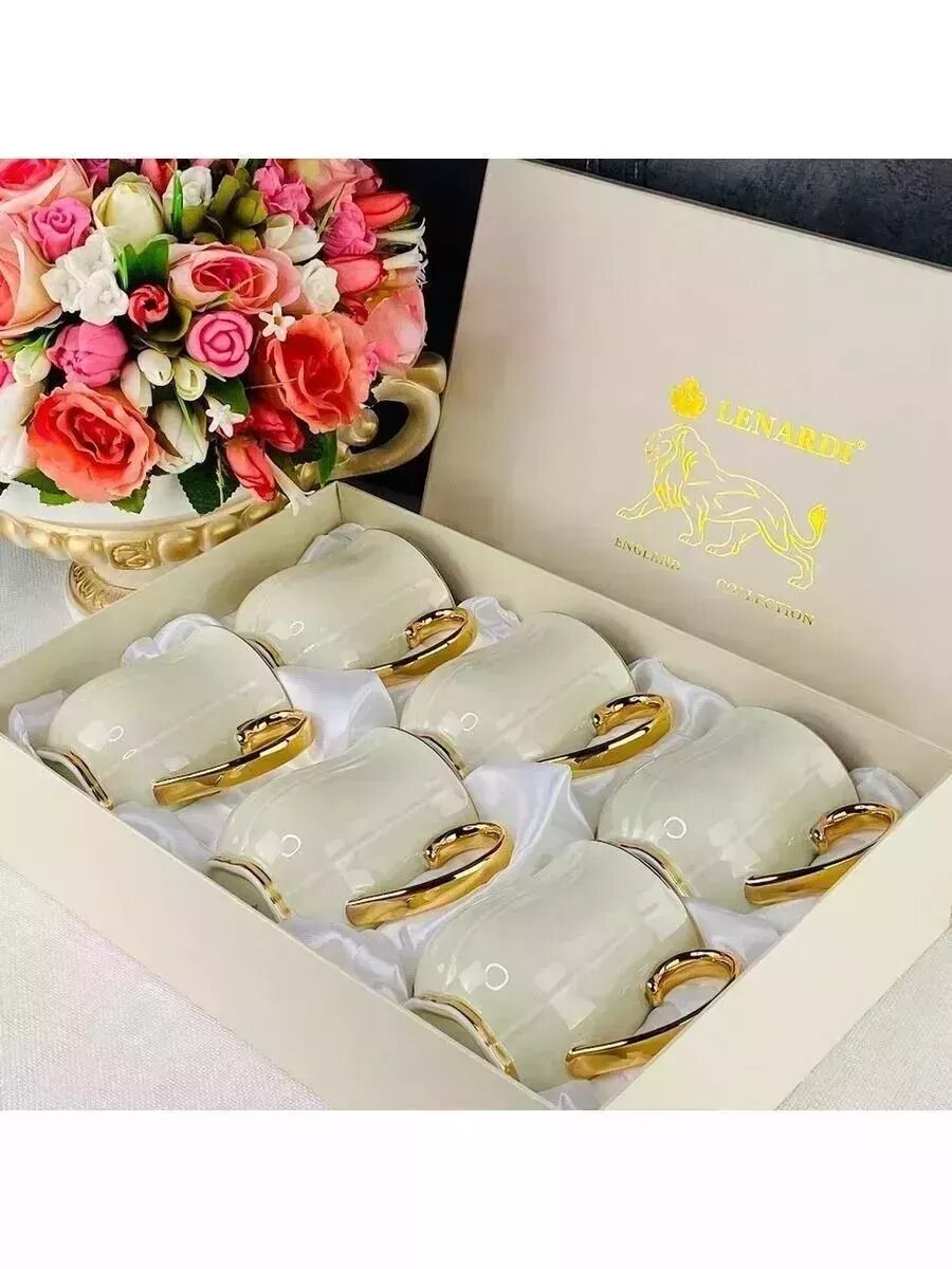 Набор из 6 кружек, 300 мл. Lenardi. Твердый фарфор, в подарочной упаковке.