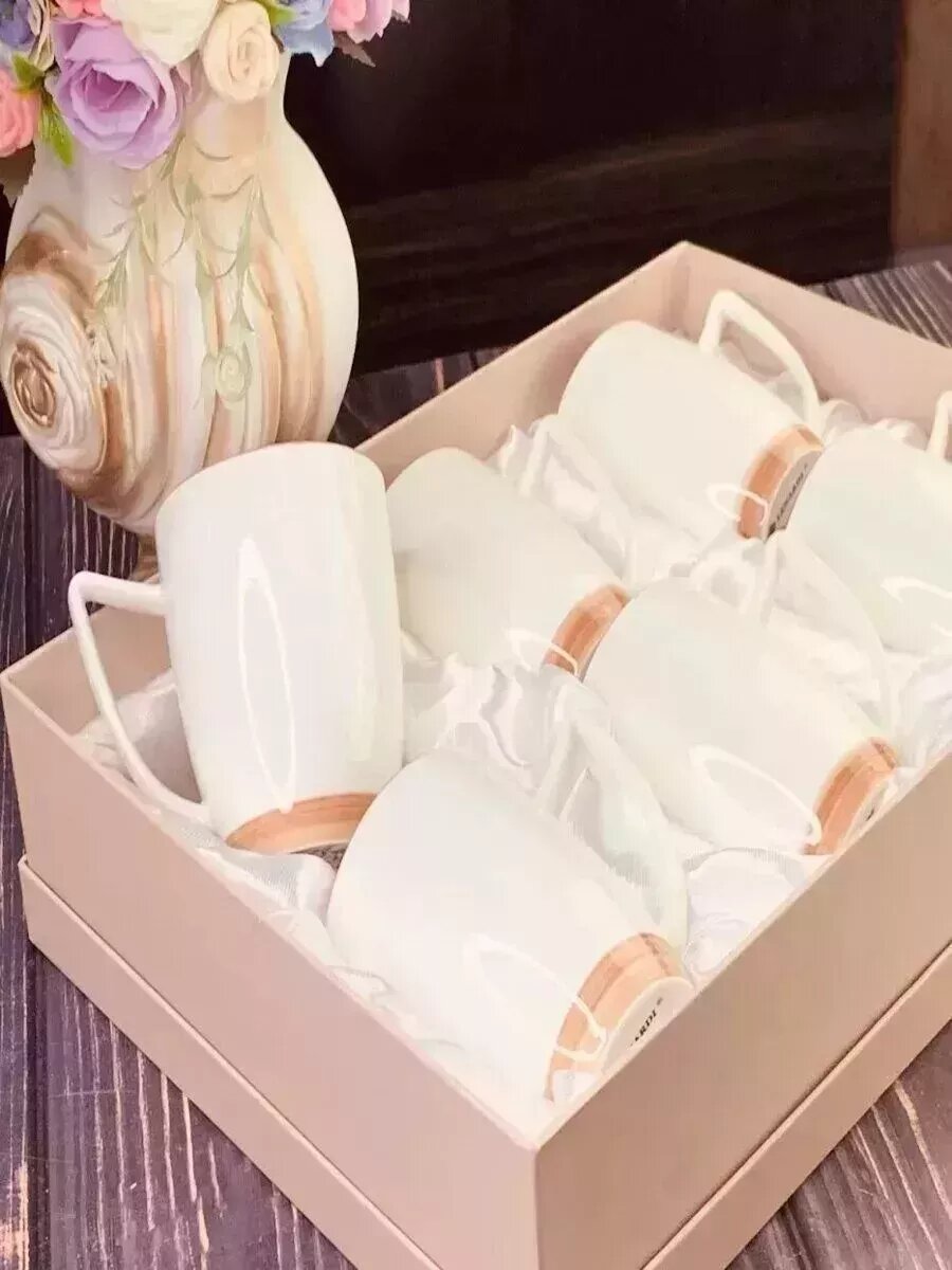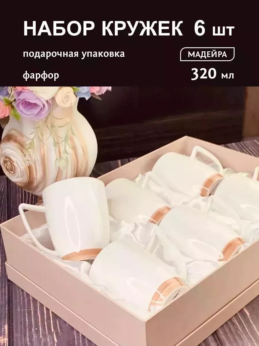 Набор из 6 кружек, 300 мл. Lenardi. Твердый фарфор, в подарочной упаковке.