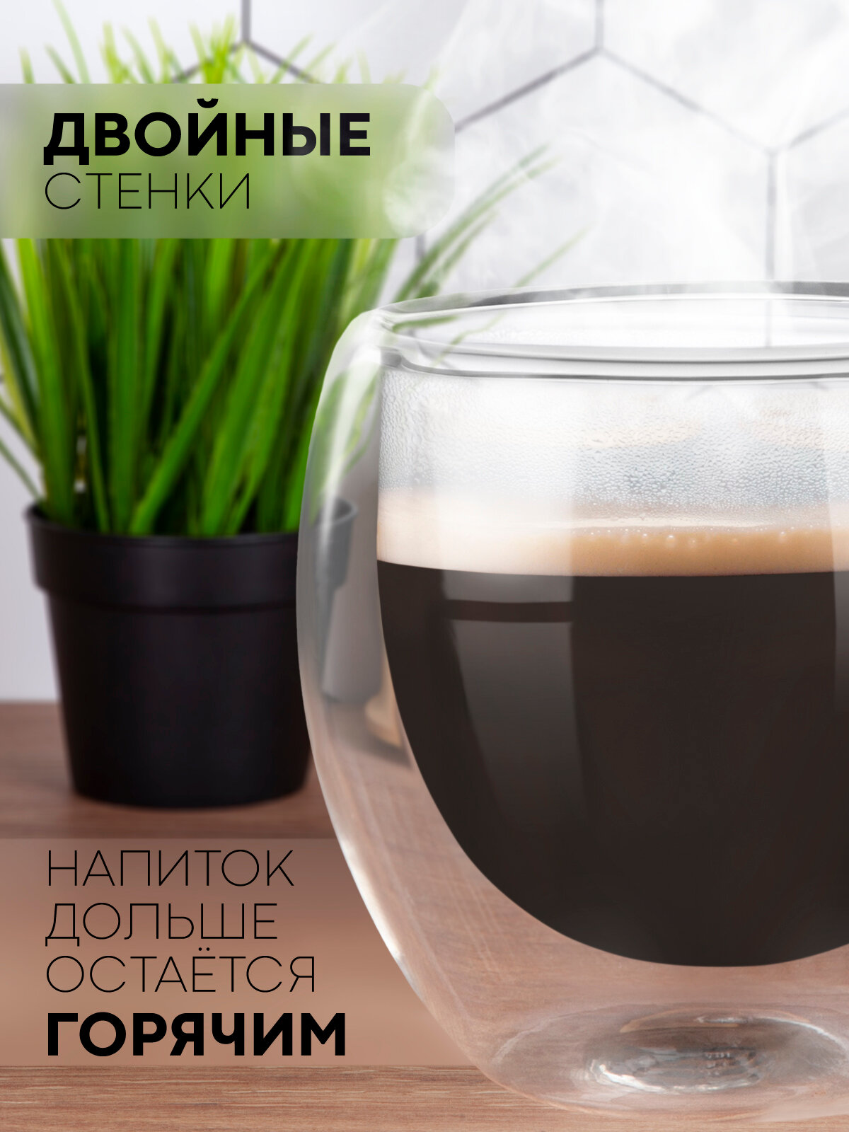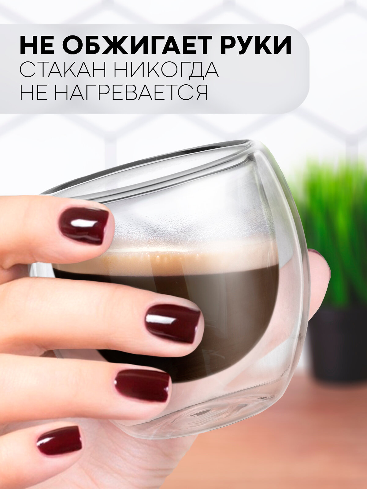 Купить Прозрачная чашка кружка с двойными стенками для кофе, чая, латте, бренд Картофан, 80 мл