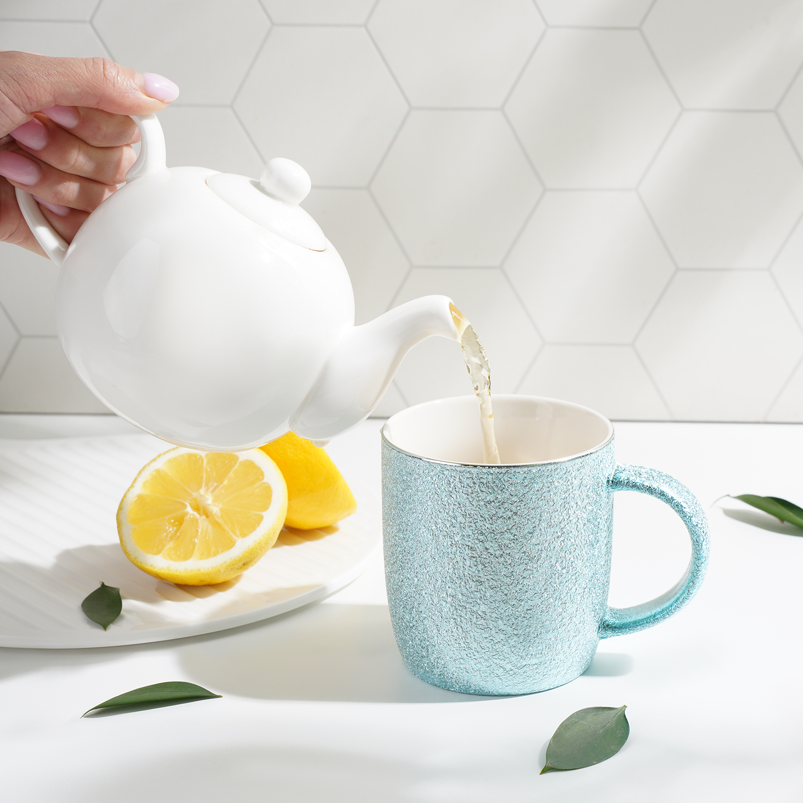 Кружка керамическая Доляна «Фольга», 350 мл, цвет голубой
