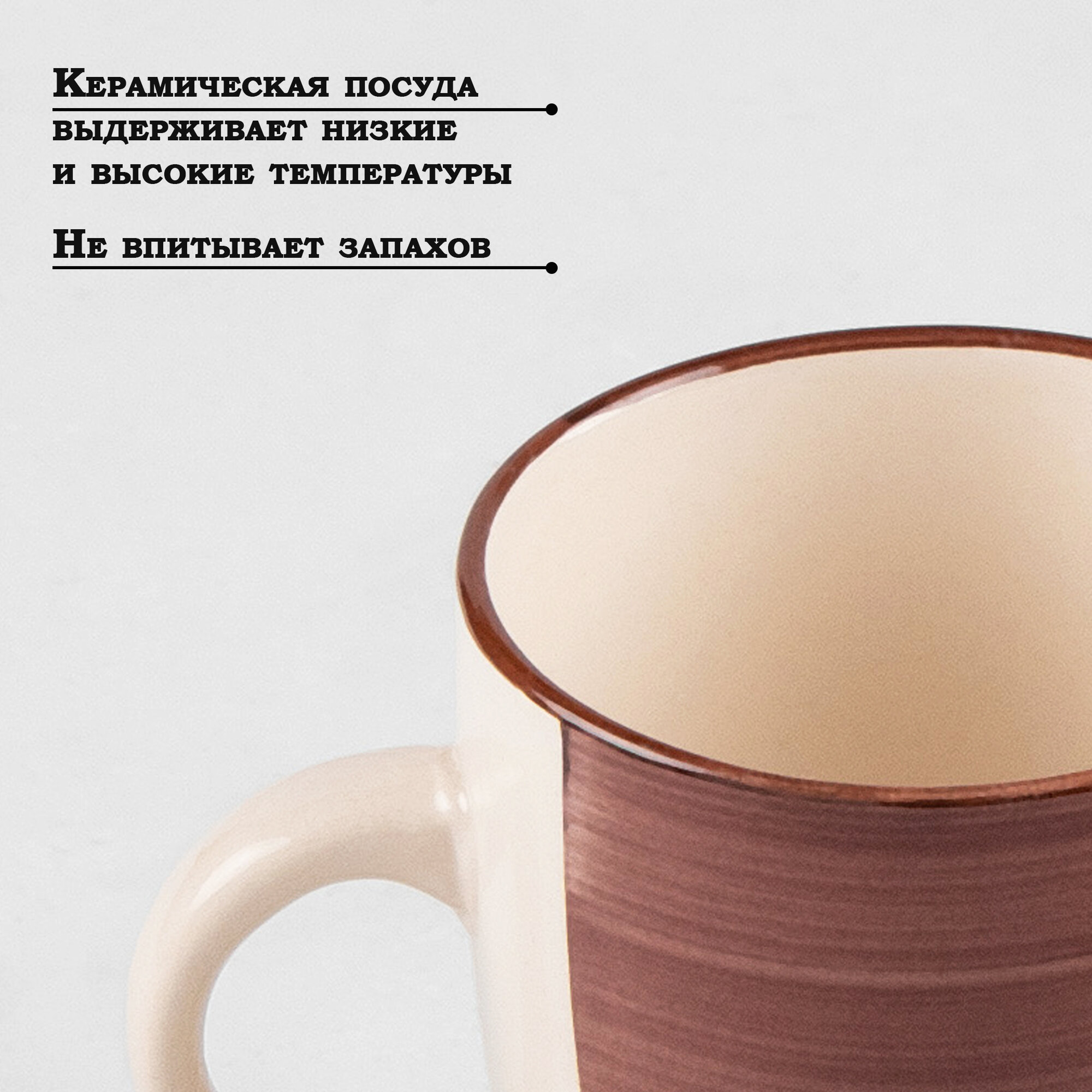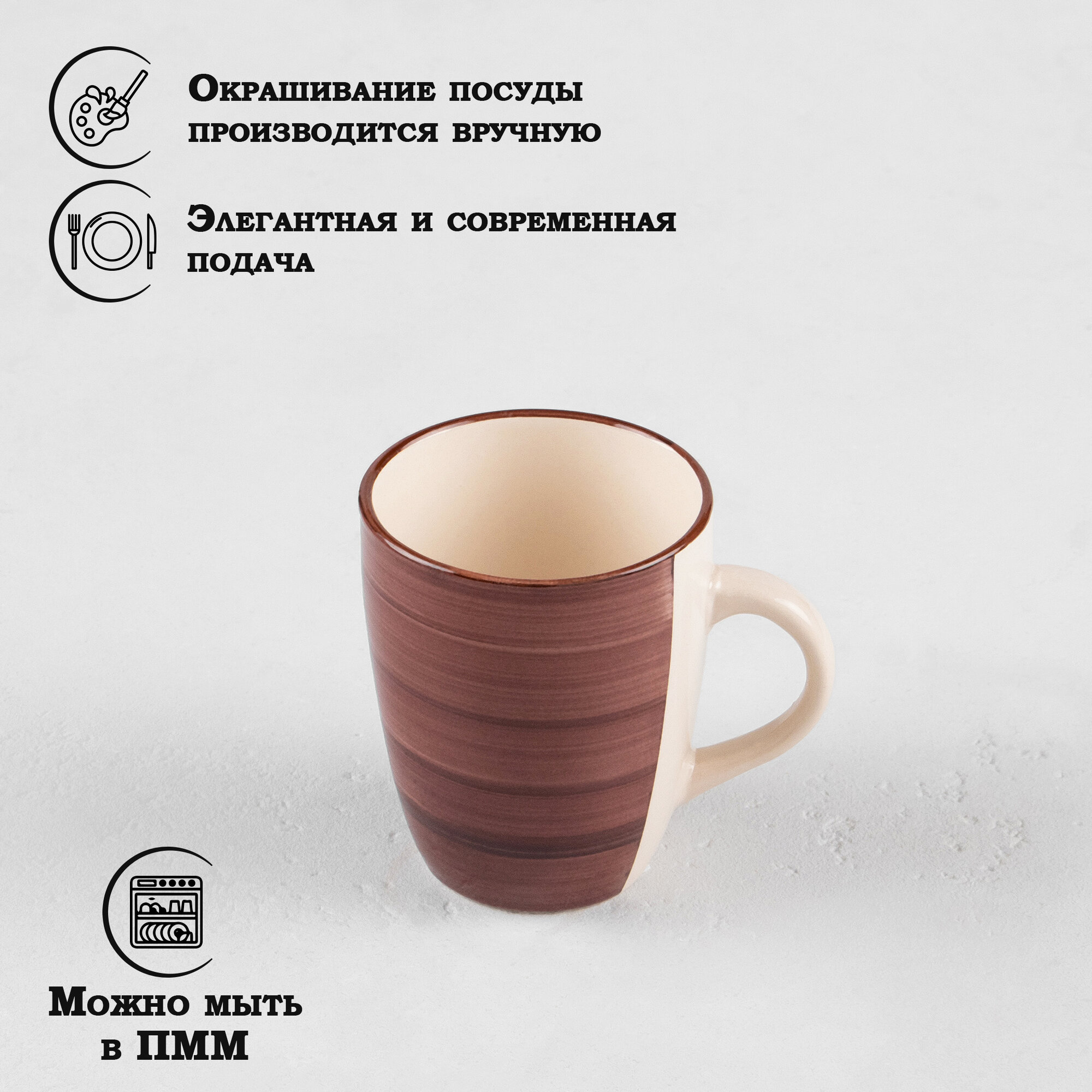 Кружка керамическая Доляна «Пастель», 360 мл, цвет коричневый