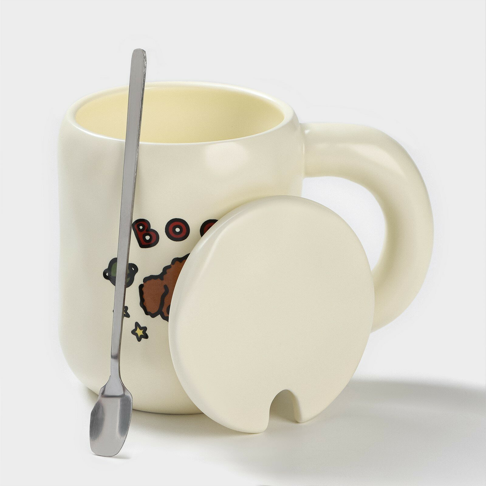 Кружка керамическая с ложкой «Мишка», 450 мл, цвет бежевый интересное: