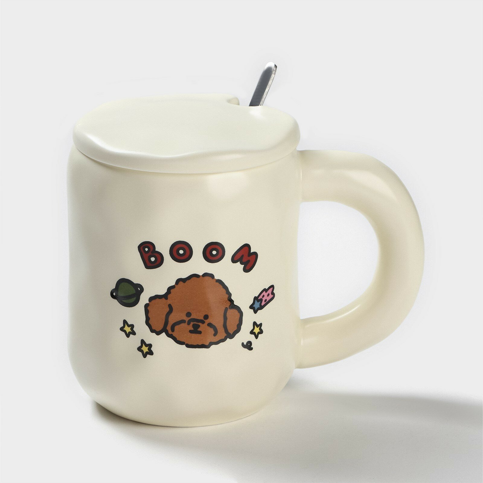 Кружка с керамической крышкой и ложкой "Мишка" 450 мл 13,5х9х11см