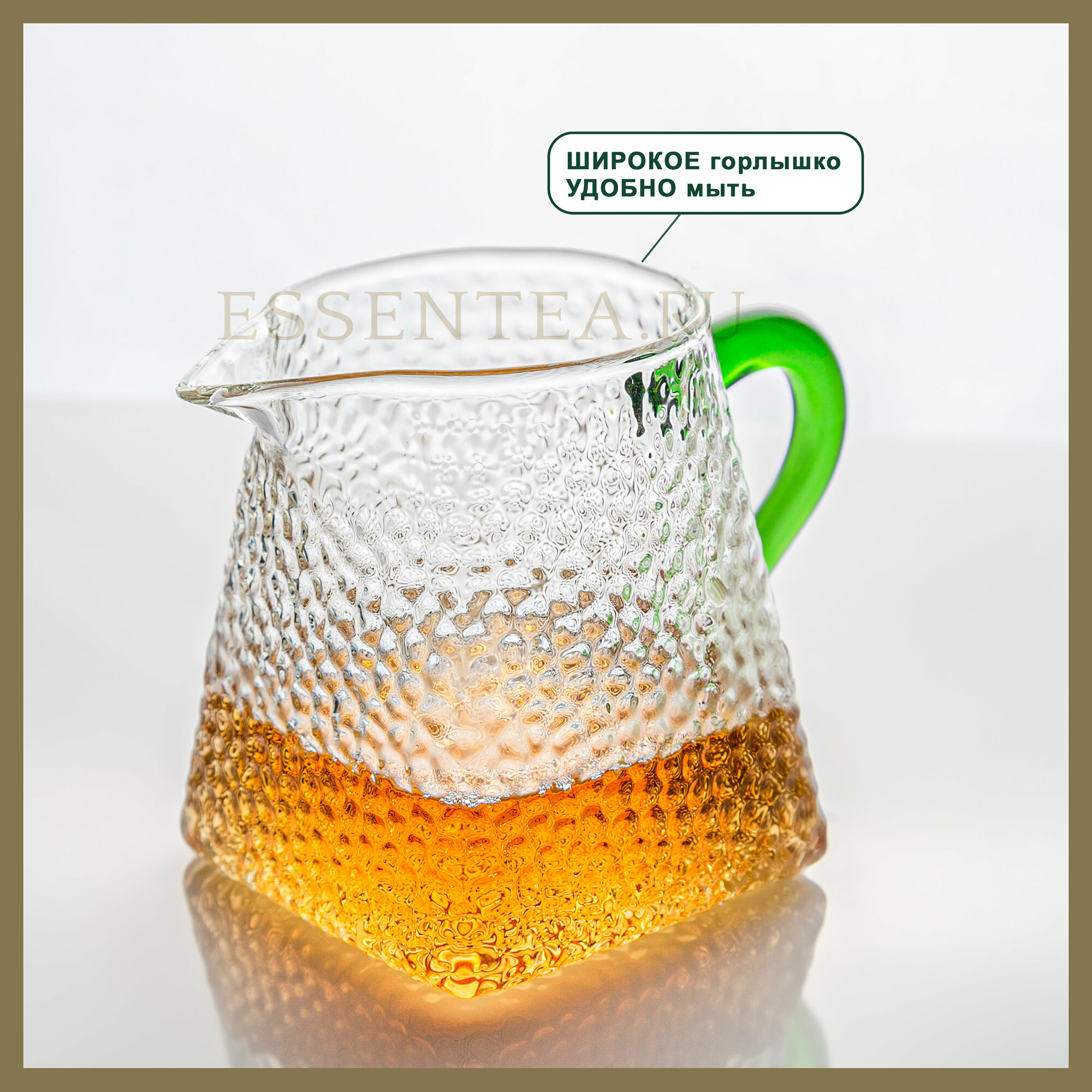Essentea / Стеклянная чашка "чахай" с зеленой ручкой 300 мл интересное: