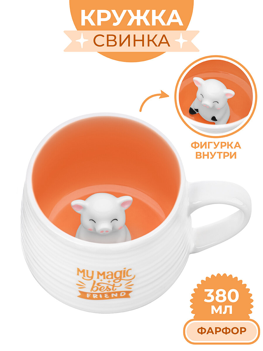 Купить Кружка / чашка для кофе, чая 380 мл Elan Gallery "Свинка" 13,5х10х8,3 см