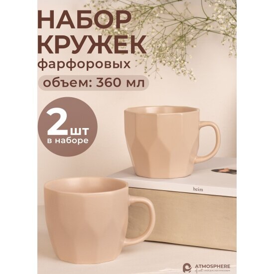 Набор кружек фарфоровых Atmosphere, 360 мл, 2 шт, бежевые