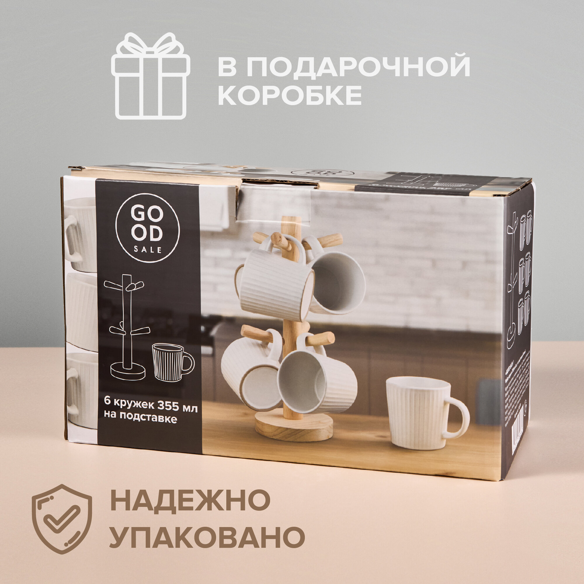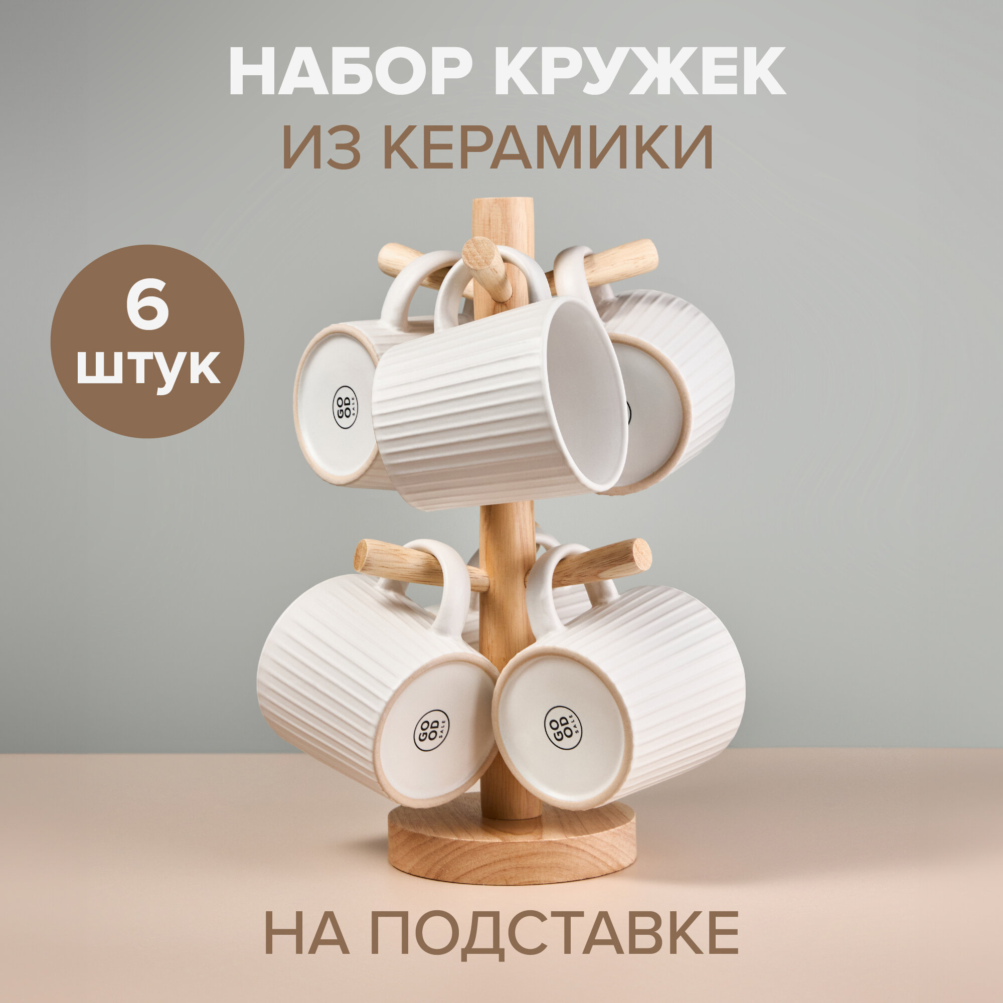 Купить Набор керамических кружек Good Sale для чая и кофе на подставке, 6 шт, белый