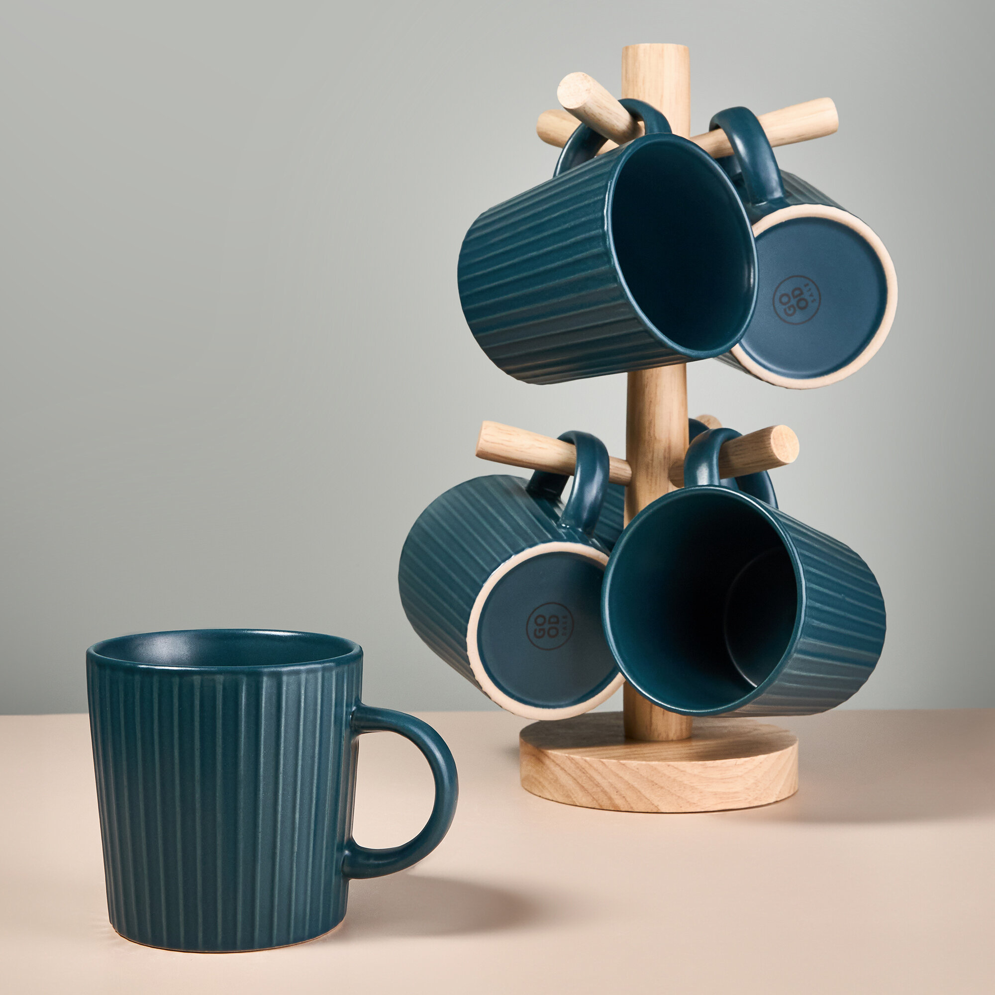 Набор керамических кружек Good Sale для чая и кофе на подставке, 6 шт, бежевый