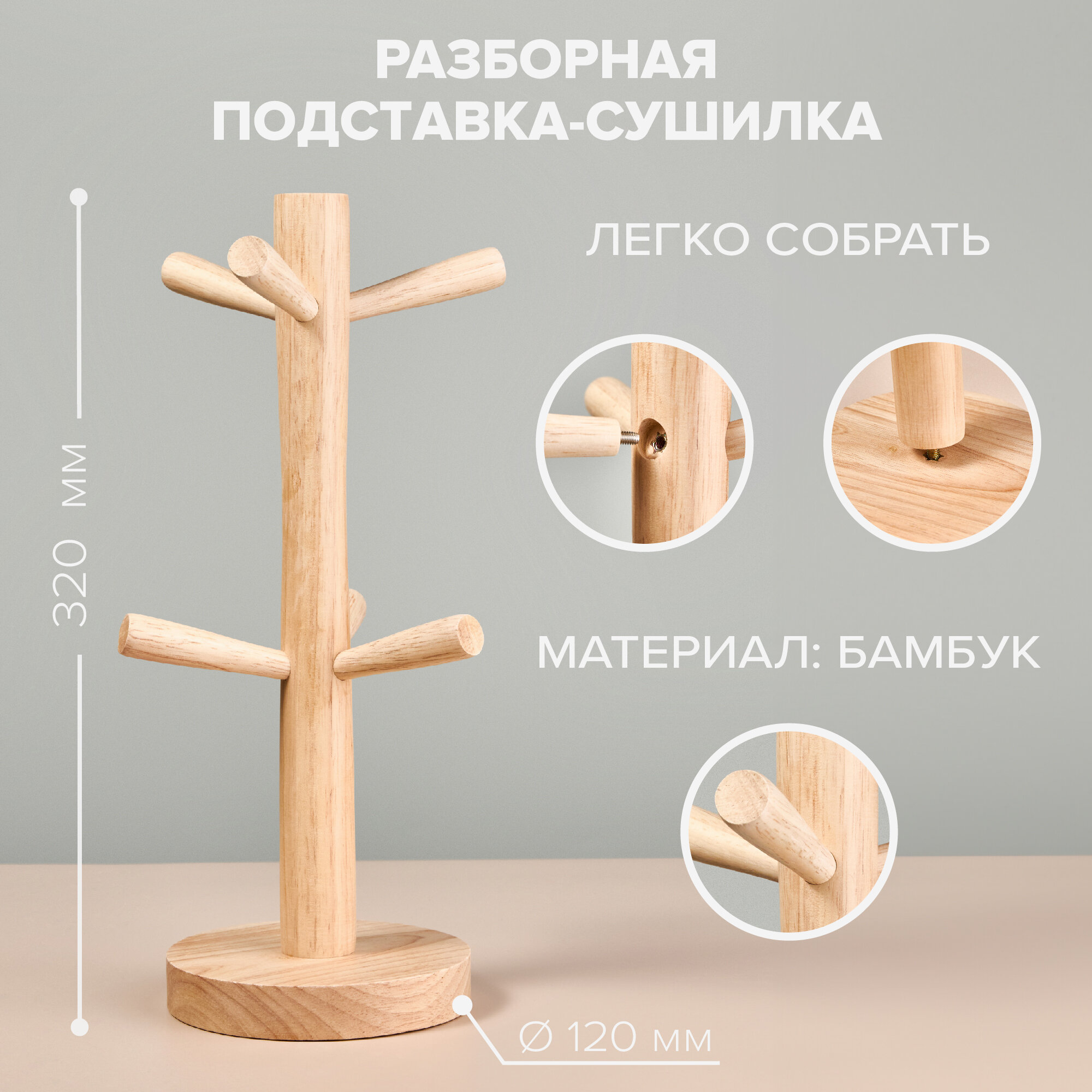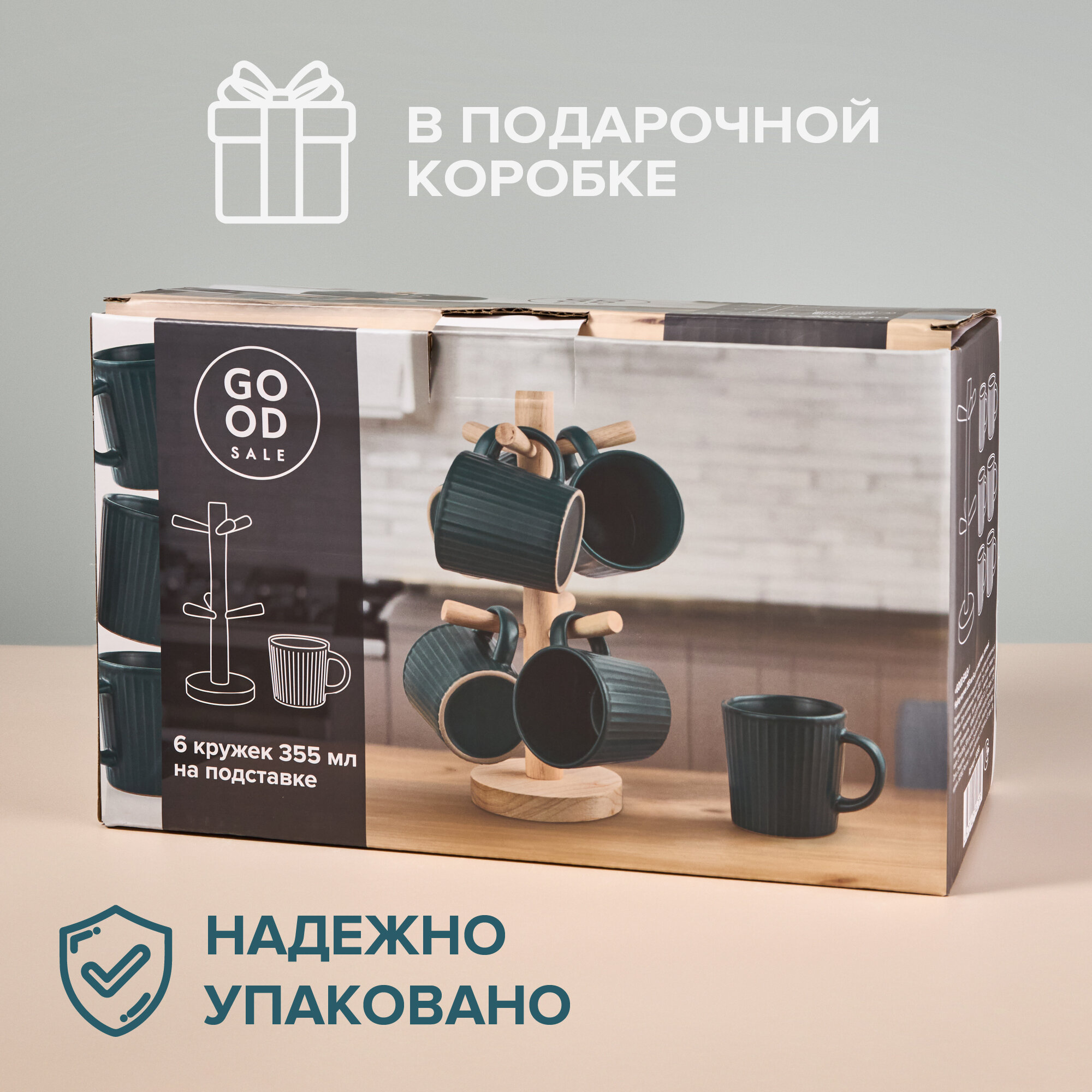 | Комплектация | Набор керамических кружек - 6 шт., подставка из бамбука, подарочная коробка |