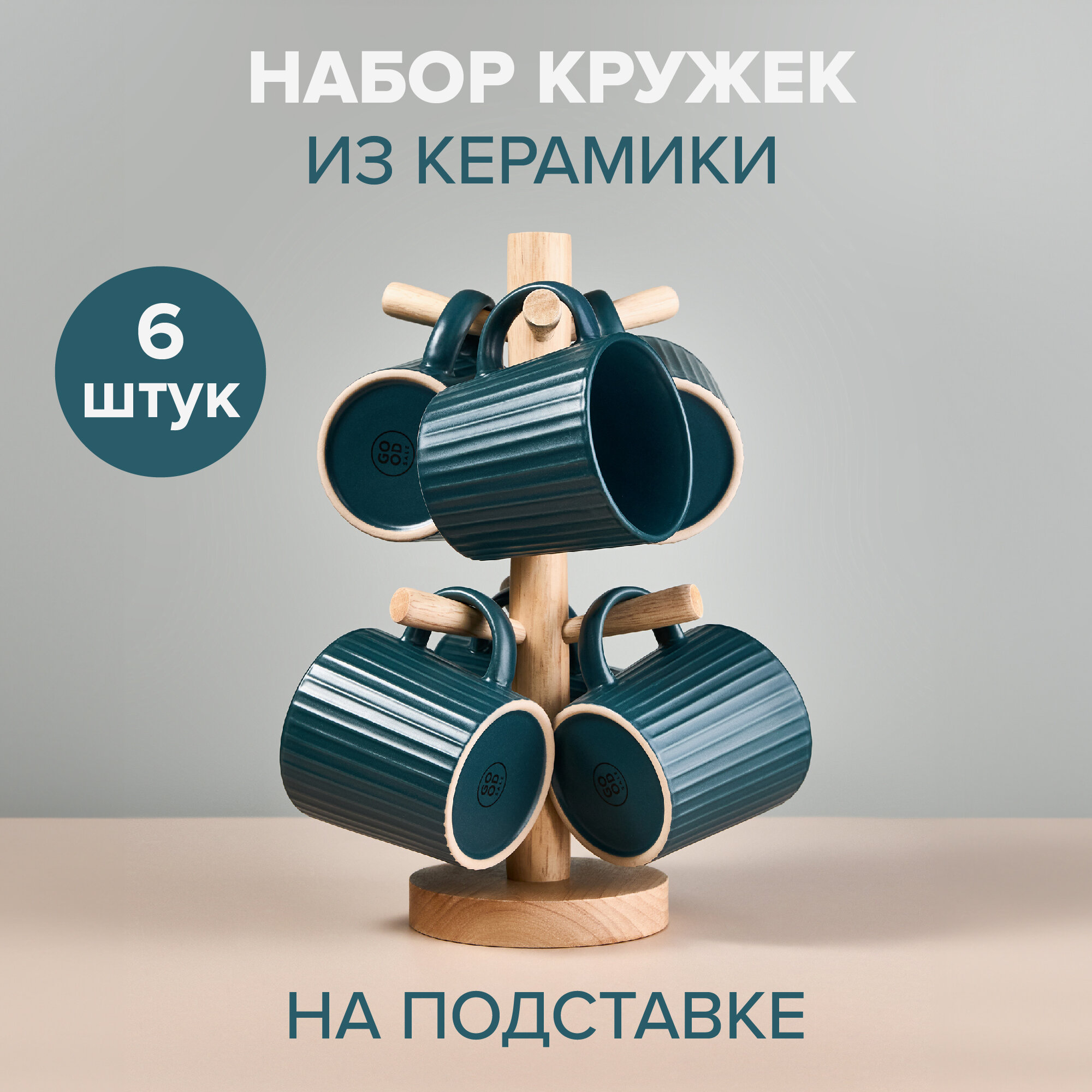 Набор керамических кружек Good Sale для чая и кофе на подставке, 6 шт, зеленый интересное: