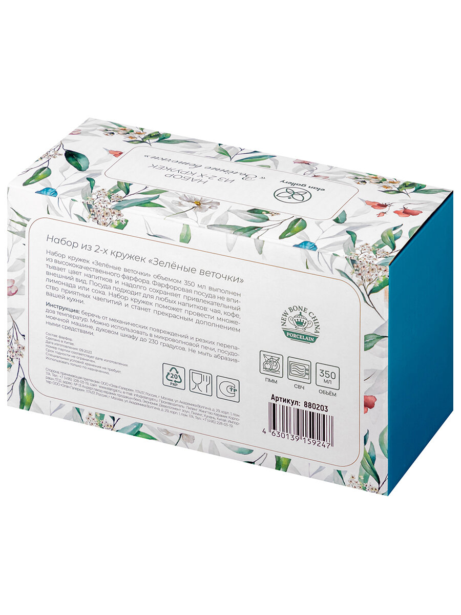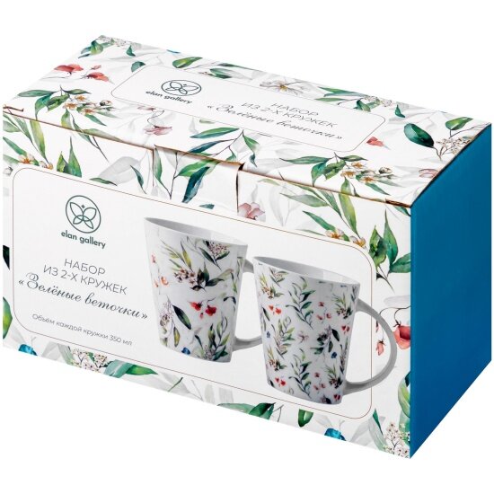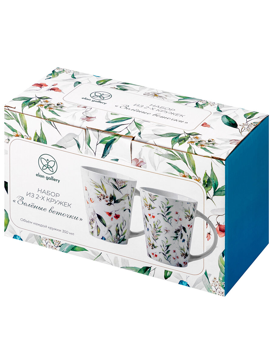 Кружка / чашка для кофе, чая 2 шт 350 мл 12х9х11 см Elan Gallery Зеленые веточки, набор интересное: