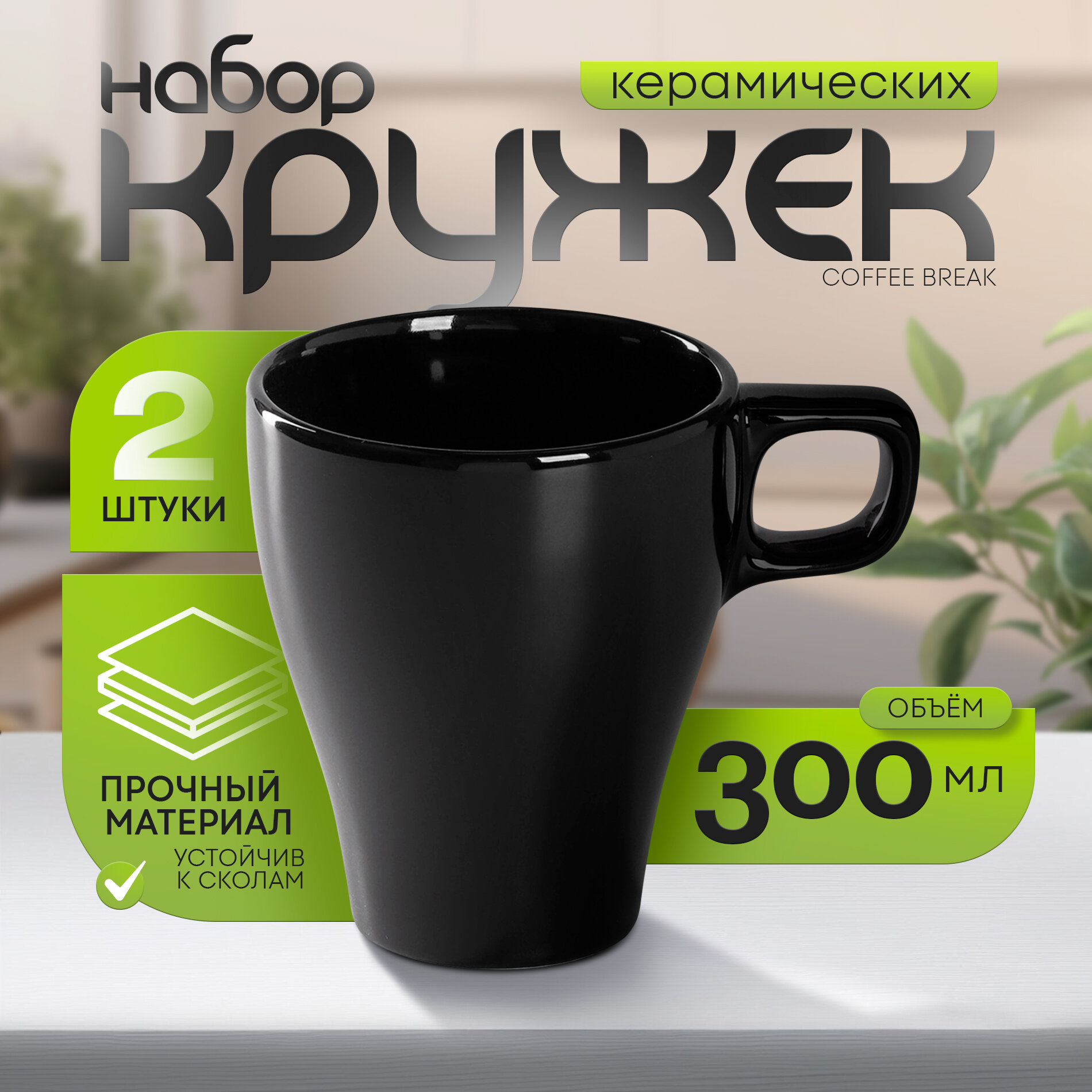 Набор кружек 2 шт Coffee break, 300мл, цвет черный, керамика