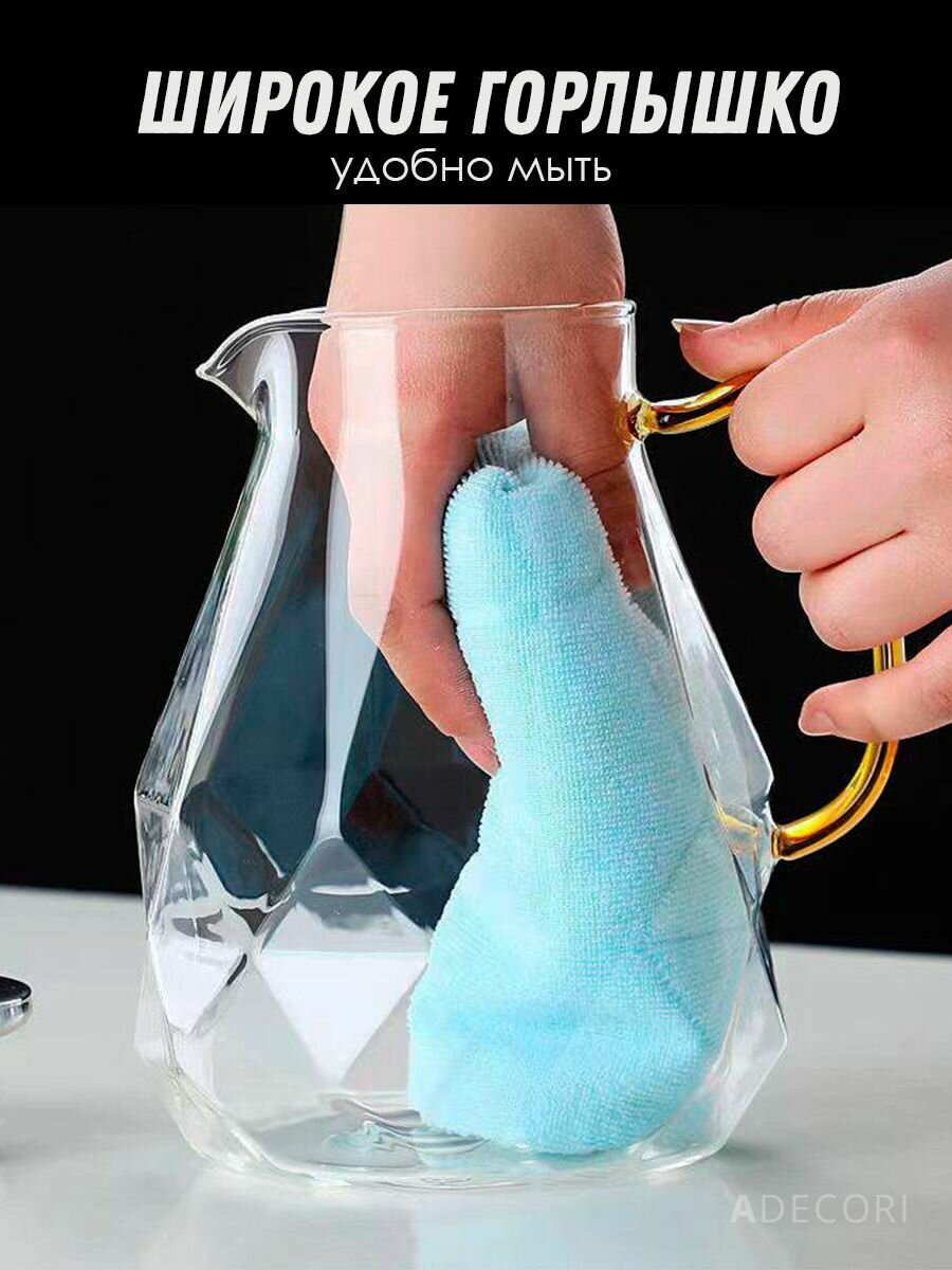 СохранитьКувшин стеклянный + 4 кружки (для воды и напитков жаропрочные из боросиликатного стекла), Алмаз, ADECORI интересное: