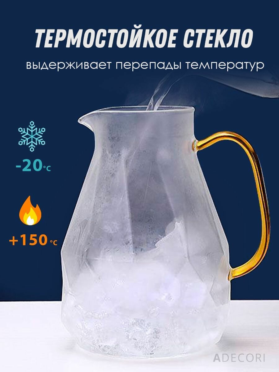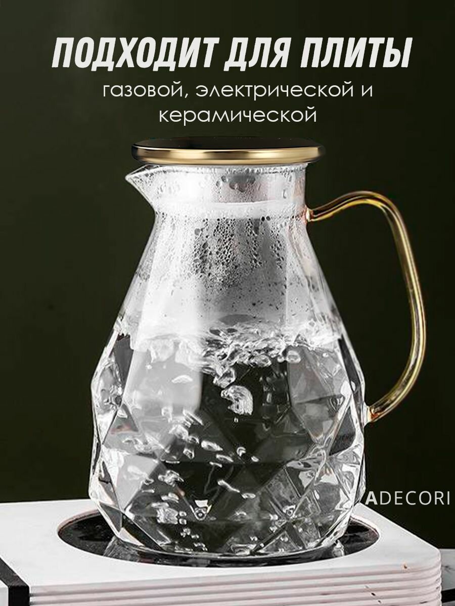 Кувшин стеклянный с крышкой для воды и напитков из жаропрочного стекла Шампань, 1900 мл (графин, чайник, заварник) ADECORI