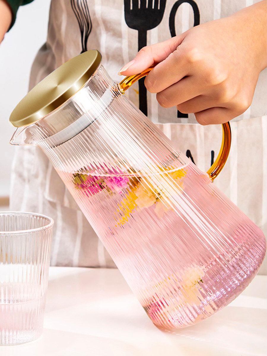 Купить Кувшин стеклянный с крышкой для воды и напитков из жаропрочного стекла Полоска, 1300 мл (графин, чайник, заварник) ADECORI