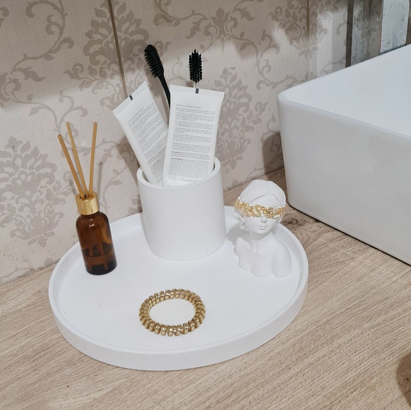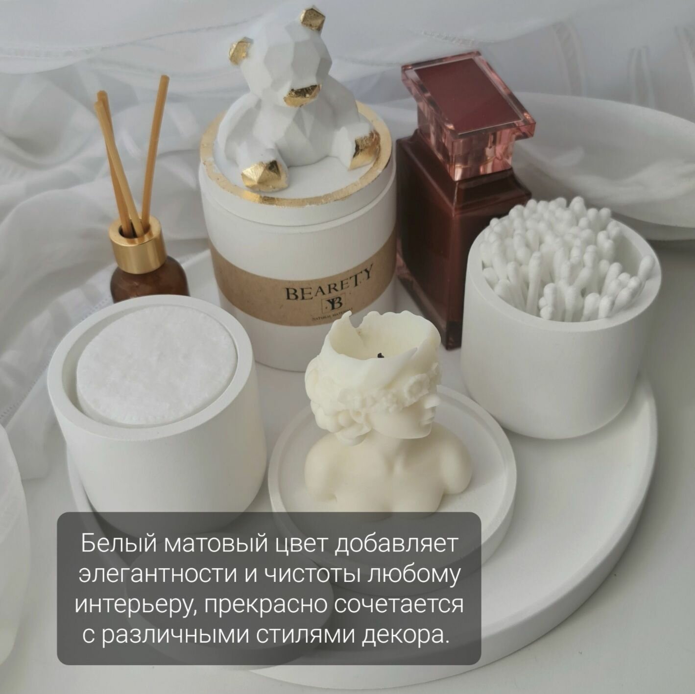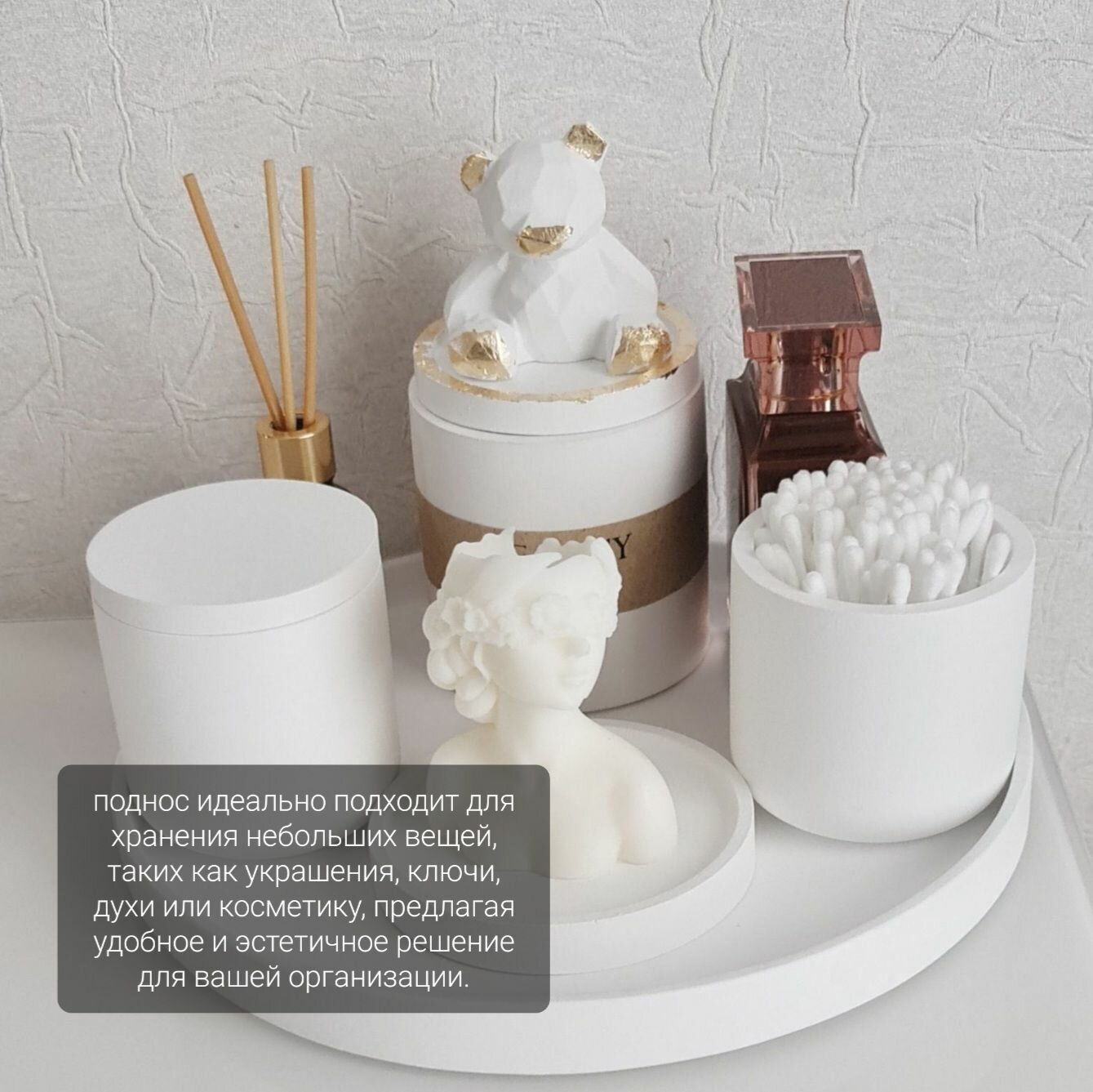 Декоративный белый поднос, круглый, из архитектурного гипса, диаметр 25см, BEARETY интересное: