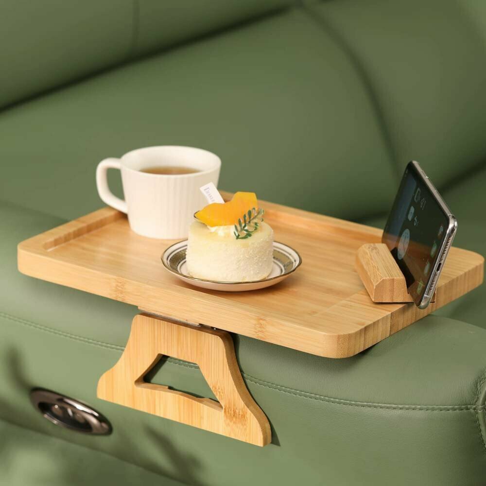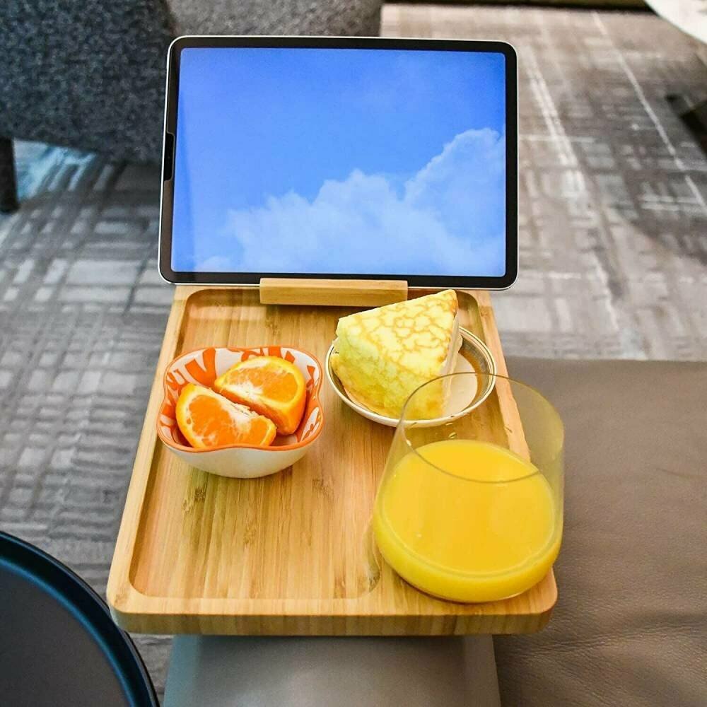 Складной бамбуковый столик на подлокотник дивана / Деревянный поднос для дивана, кресла / Накладка на подлокотник интересное: