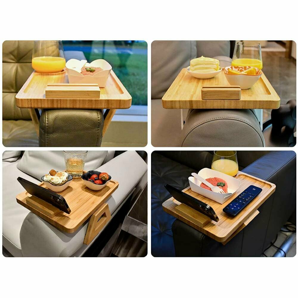 Купить Складной бамбуковый столик на подлокотник дивана / Деревянный поднос для дивана, кресла / Накладка на подлокотник