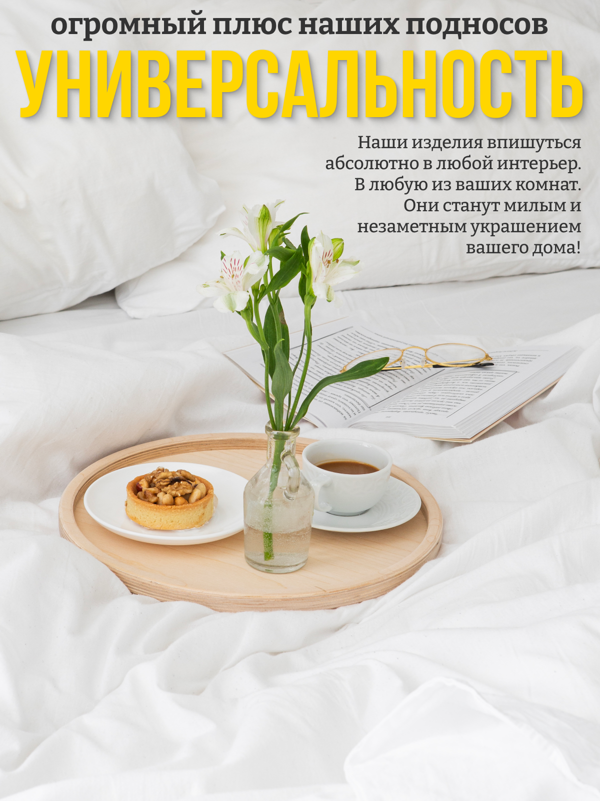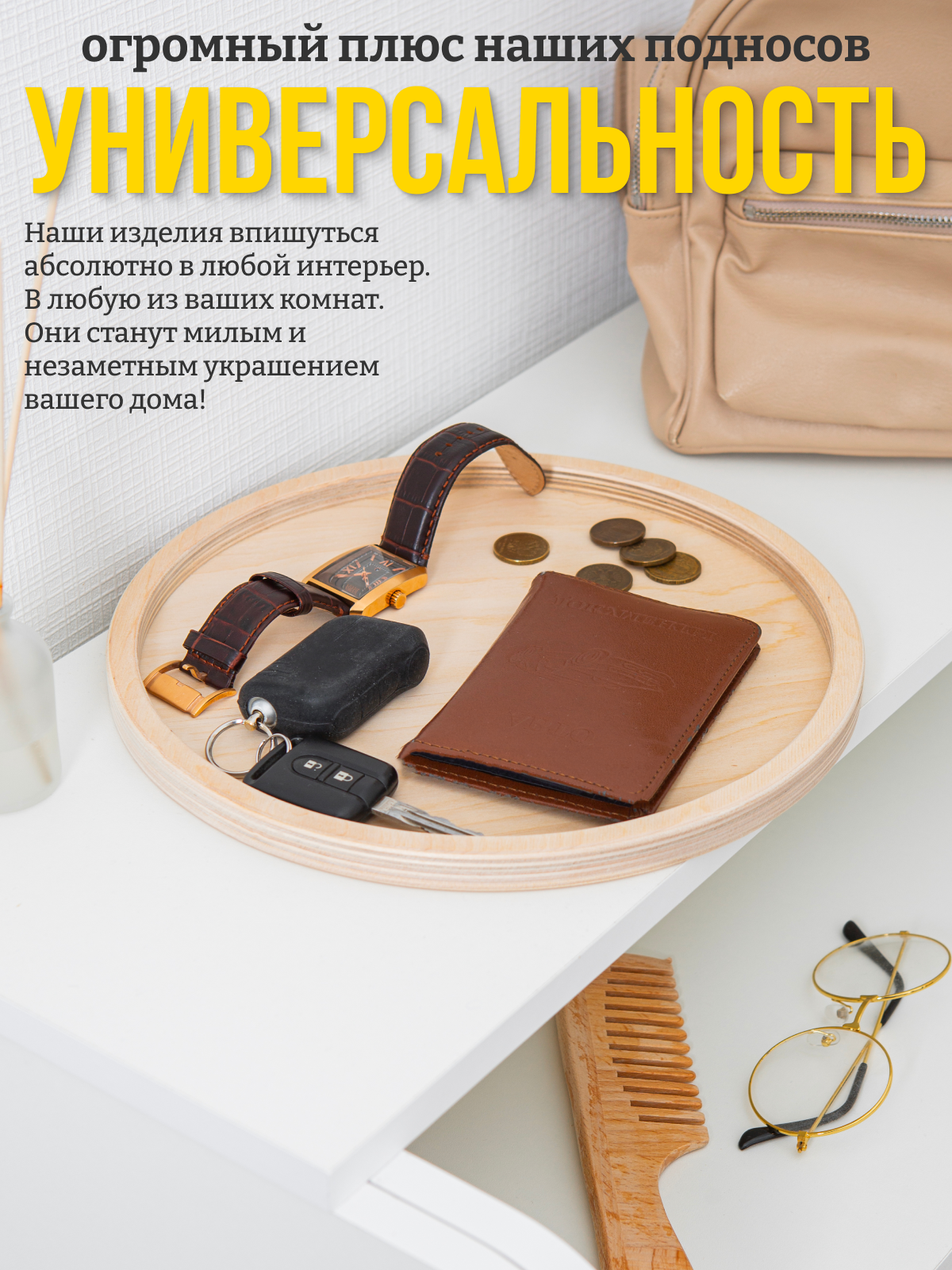 Деревянный поднос круглый 25 см интересное:
