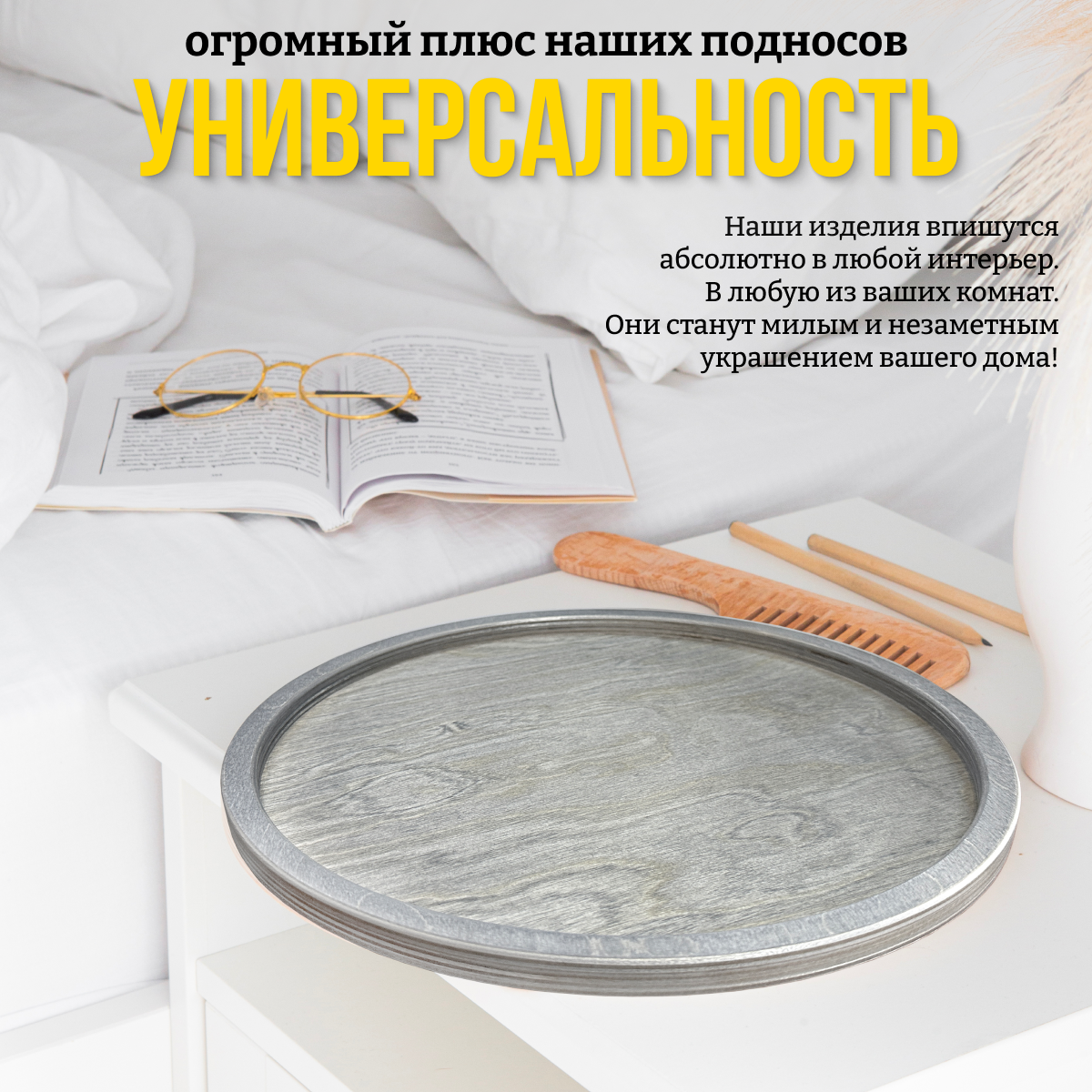 | Дополнительная информация | посуда из дерева;поднос деревянный;круглый поднос;милый поднос;поднос для декора;поднос для фото;поднос для кафе;подставка для специй;красивый подносик;поднос в прихожую;поднос в гостинную;поднос в ванну;подносы разной формы;из дерева;поднос для души |