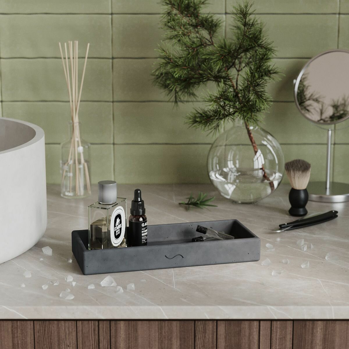 Декоративный поднос для ванной, подставка для косметики Emily S, 23x11 см, бетон, серый матовый