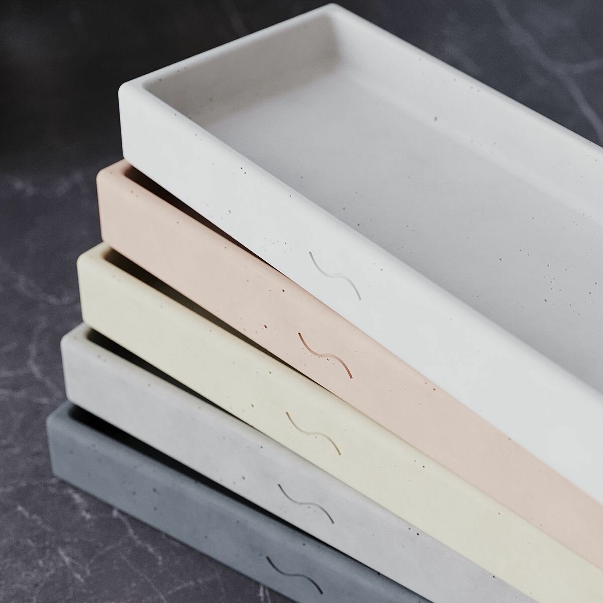 СохранитьДекоративный поднос для ванной, подставка для косметики Emily S, 23x11 см, бетон, серый матовый интересное: