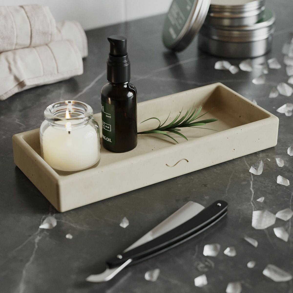 СохранитьДекоративный поднос для ванной, подставка для косметики Emily S, 23x11 см, бетон, кремовый матовый интересное: