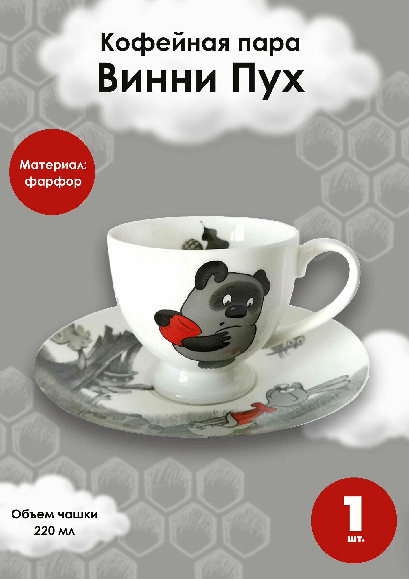 Кофейная пара «Винни Пух», фарфор, 220 мл, белый