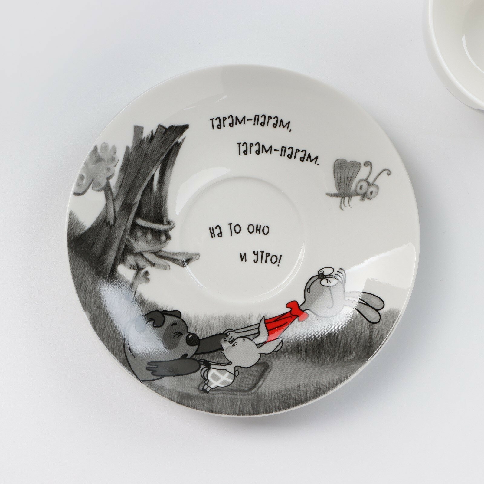 Чайная кофейная пара фарфор 220 мл. в подарочной упаковке "Малыш и Карлсон" круглая чашка с блюдцем