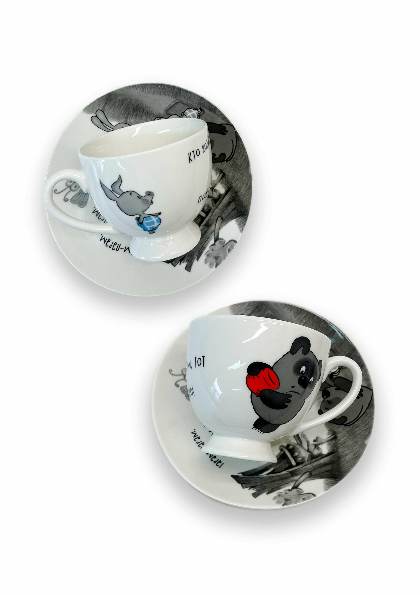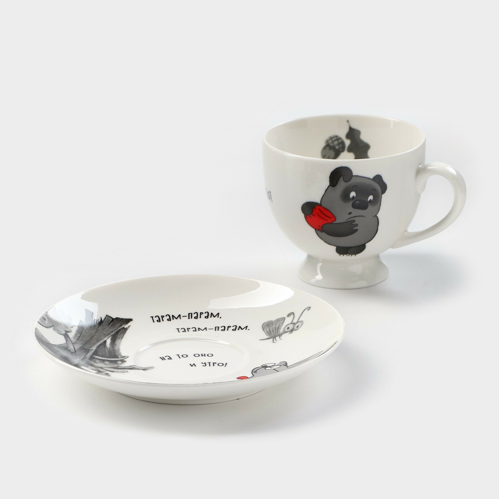 Чайная пара фарфор в подарочной упаковке Винни Пух 440 мл / чайный набор / чашка с блюдцем / комплект чайной посуды на одну персону