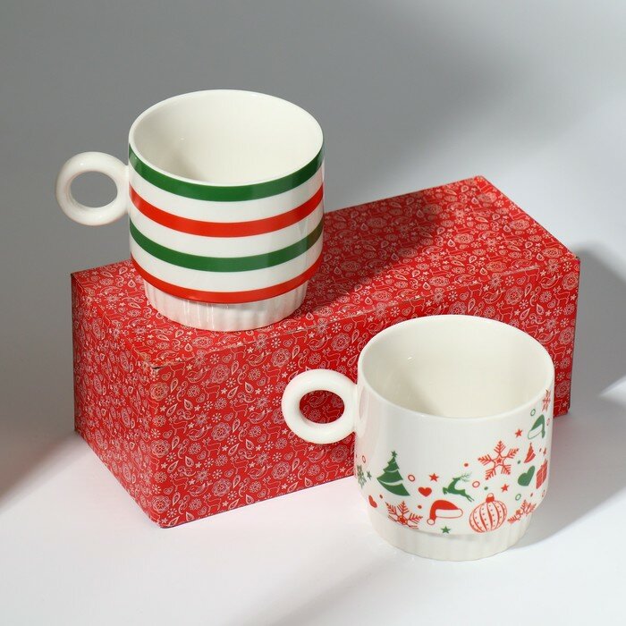 Подарочный набор новогодних кружек из керамики "Новогоднее настроение", 250 мл, 2 шт