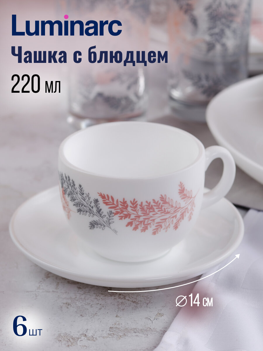 Luminarc Чайный стеклянный набор Luminarc «Идиллия», 12 предметов: кружка 265 мл, 6 шт, блюдце d=13 см, 6 шт, цвет лилак