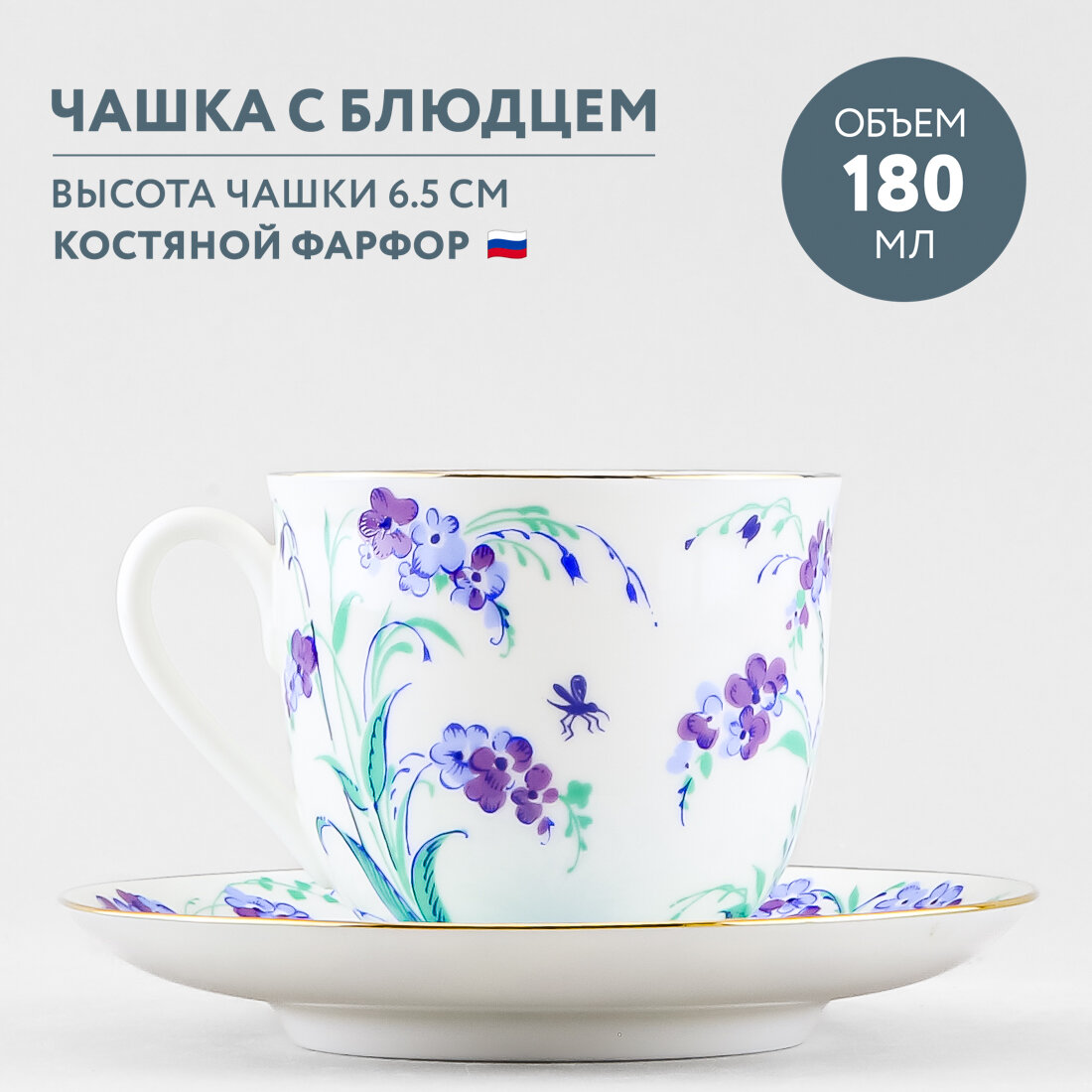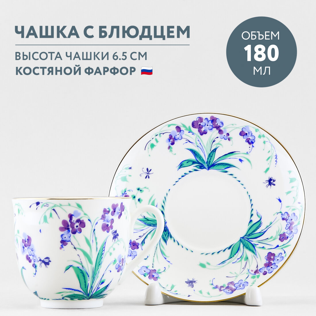 Купить Кофейная пара. Форма "Ландыш", рисунок "Незабудки". Костяной фарфор. 180 мл. Императорский фарфоровый завод ИФЗ ЛФЗ