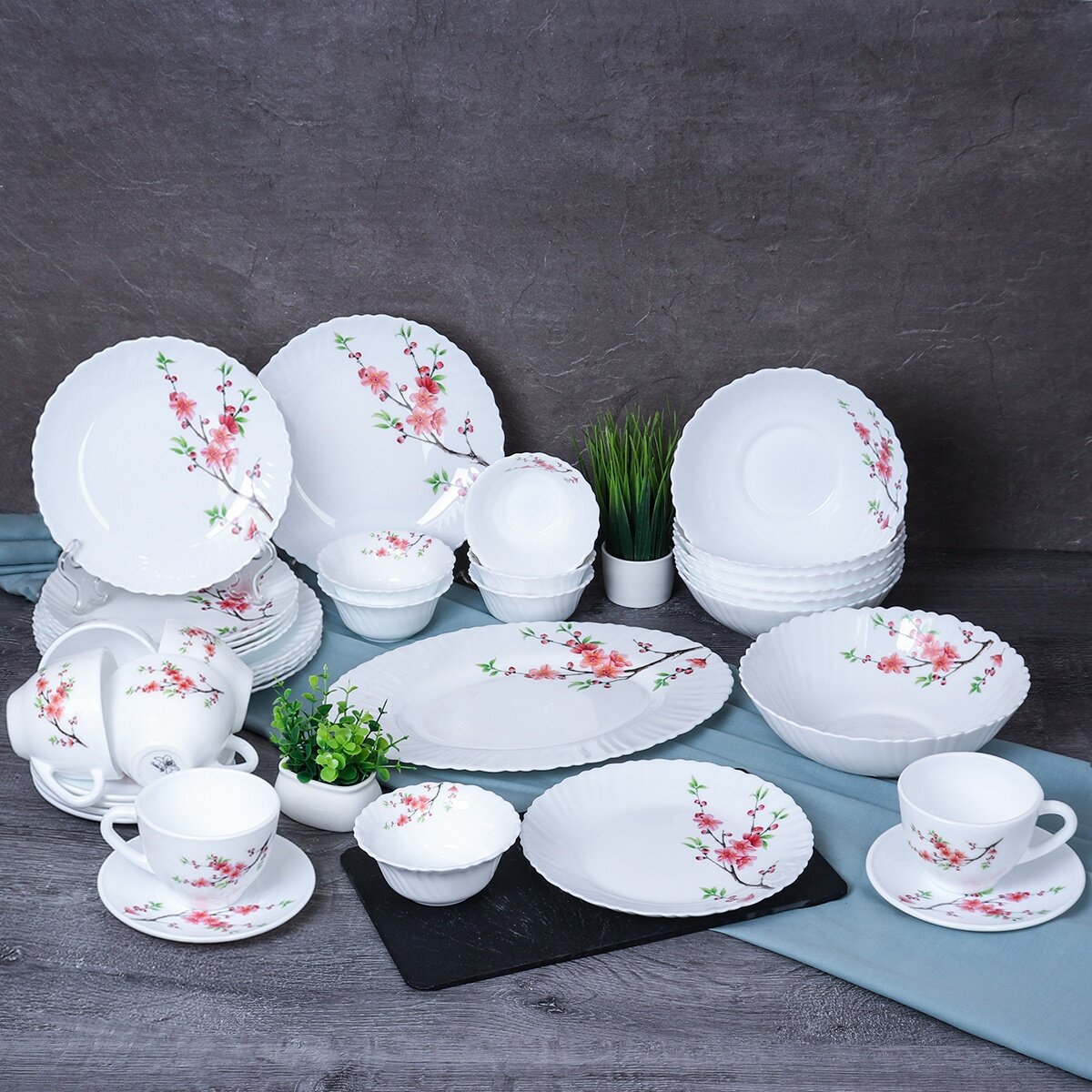 Столовый сервиз посуды "Сакура" на 6 персон 36 предметов с чайным набором