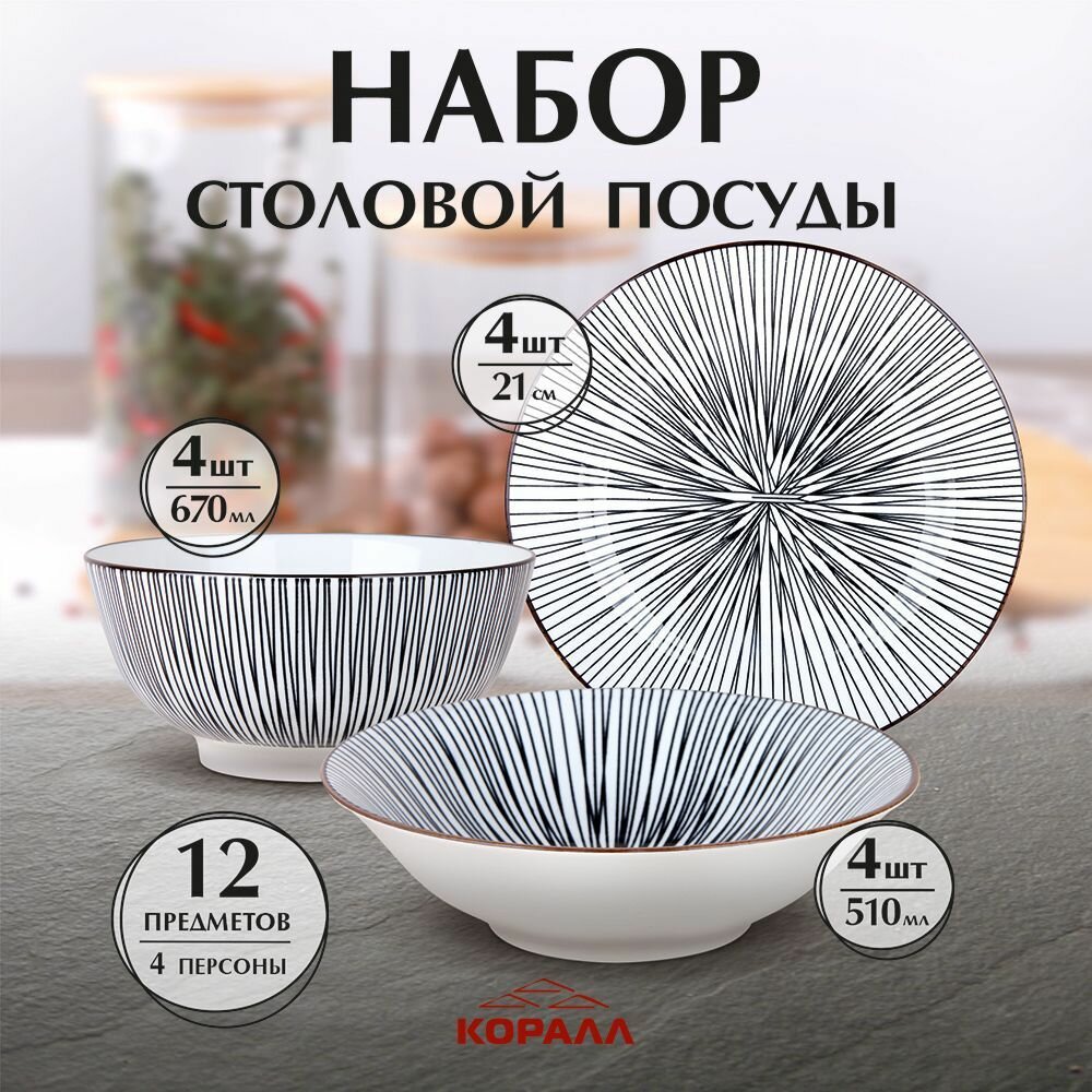СохранитьНабор посуды столовой Line 12 пред. 4 перс. столовый сервиз обеденный керамика Коралл интересное: