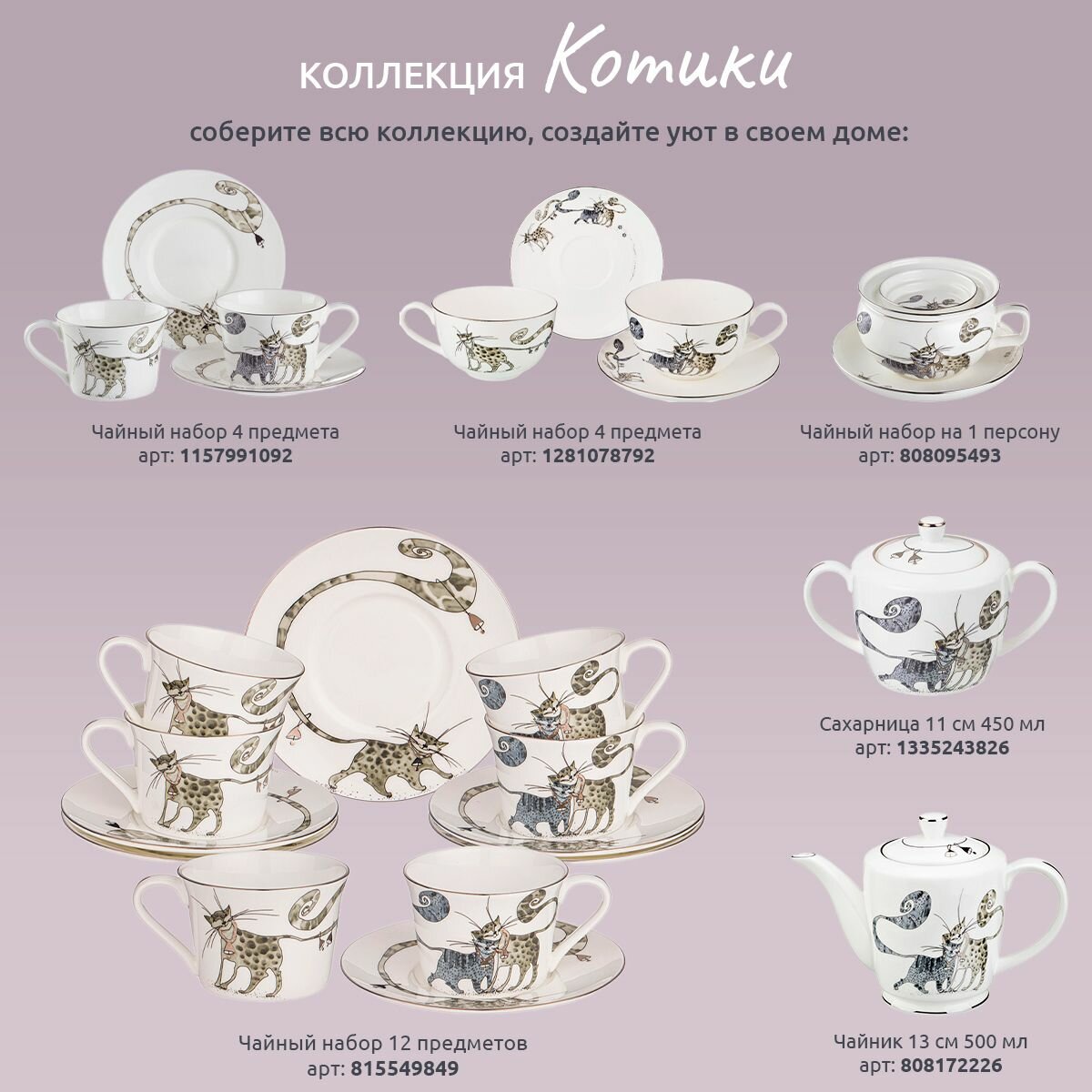 Чайный набор 264-399 на 1 персону 2 пр. "Кошки" 200 мл интересное: