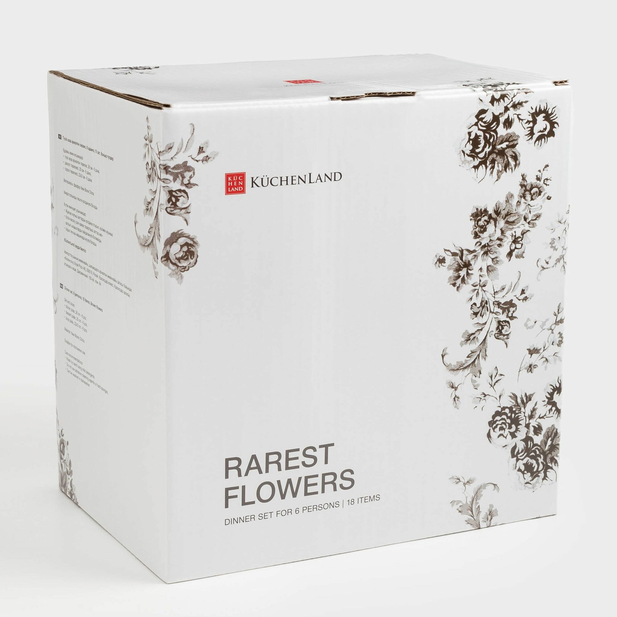 Сервиз обеденный, "Kuchenland", 6 перс, 18 пр, фарфор N, белый, Коричневые цветы, Rarest flowers