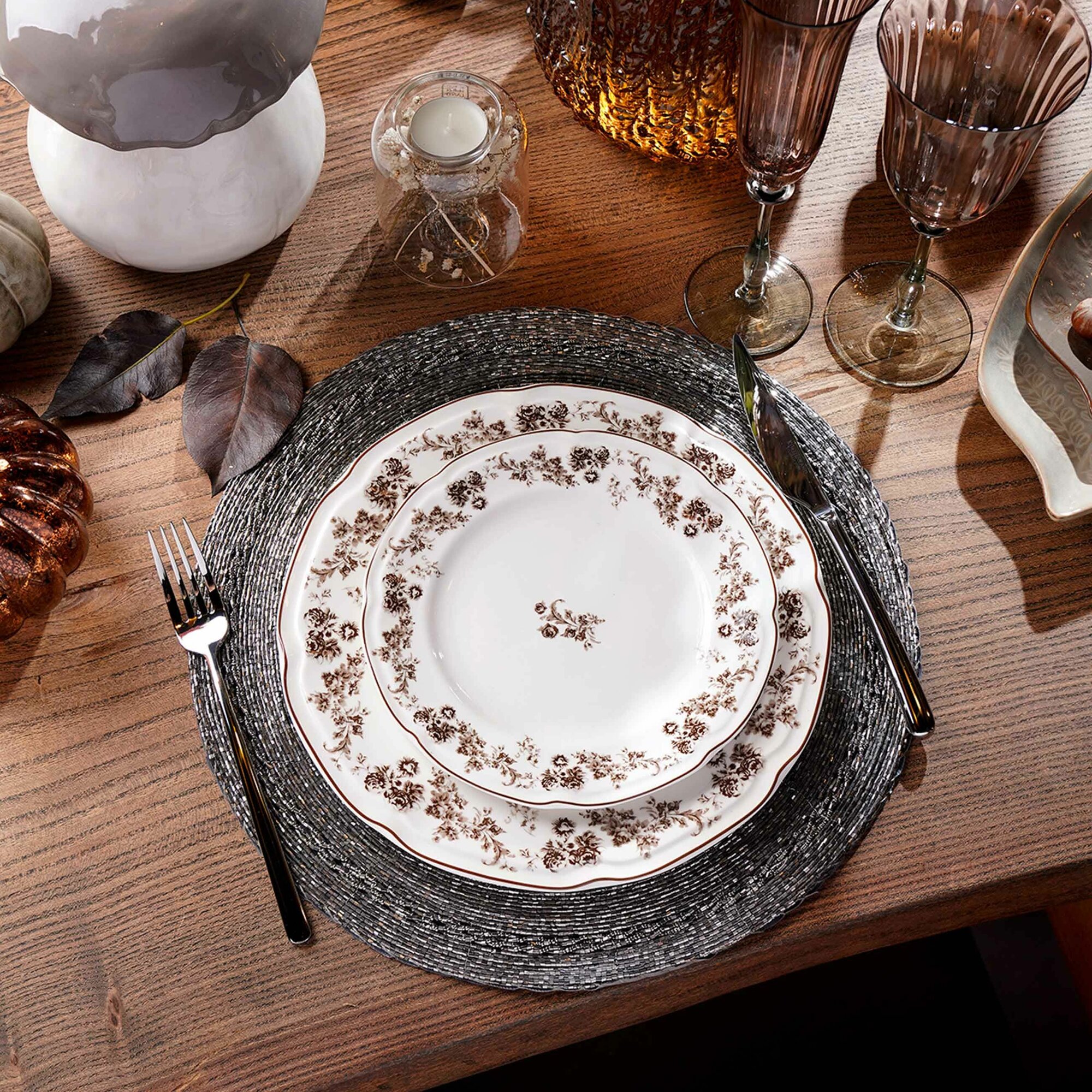 Купить Сервиз обеденный, 6 перс, 18 пр, фарфор N, белый, Коричневые цветы, Rarest flowers