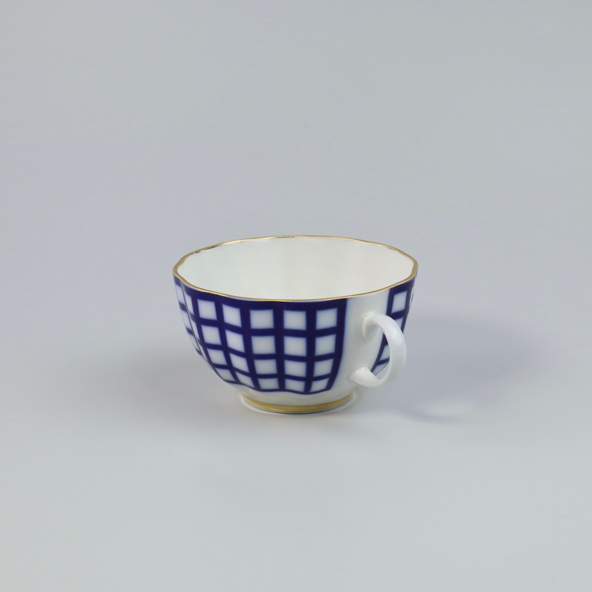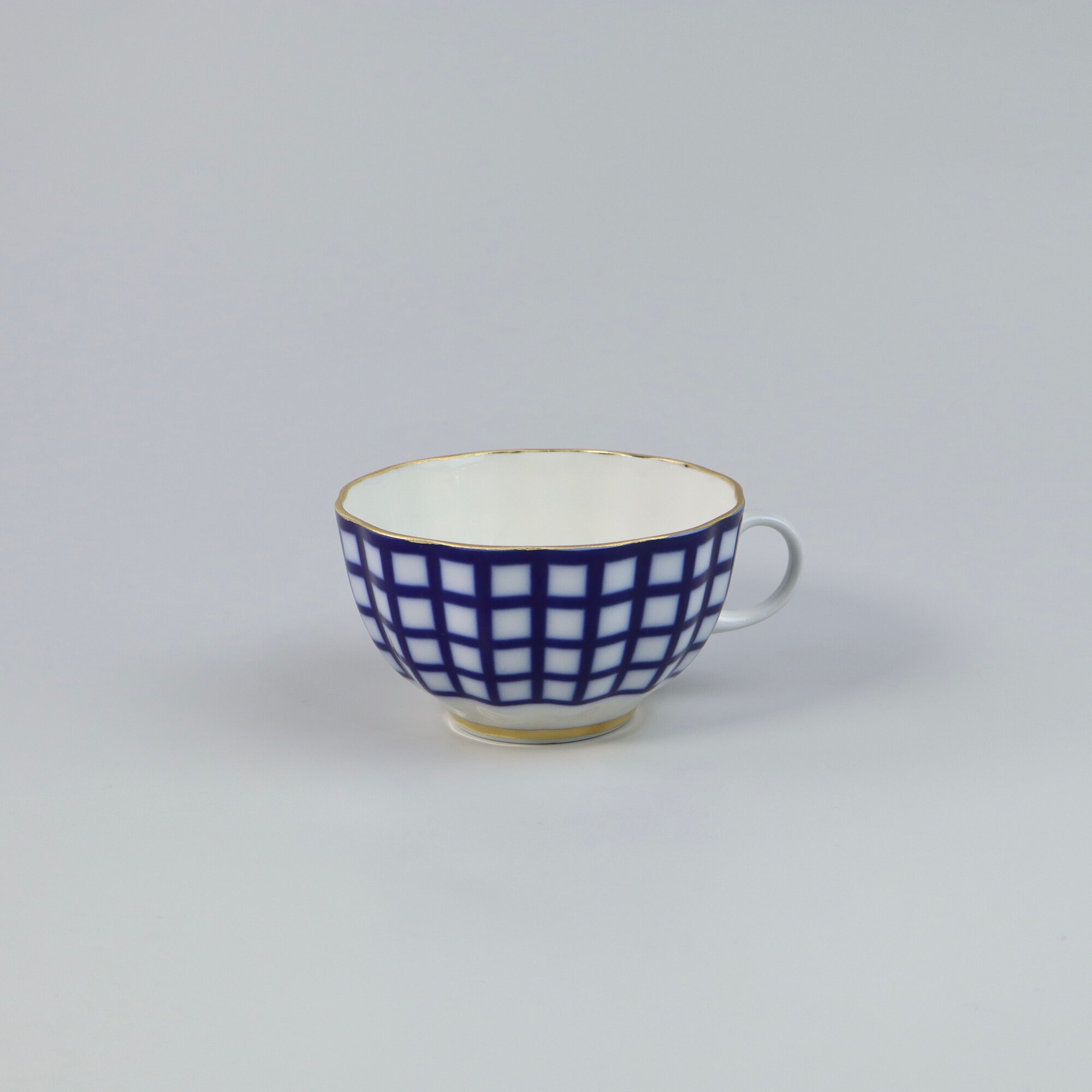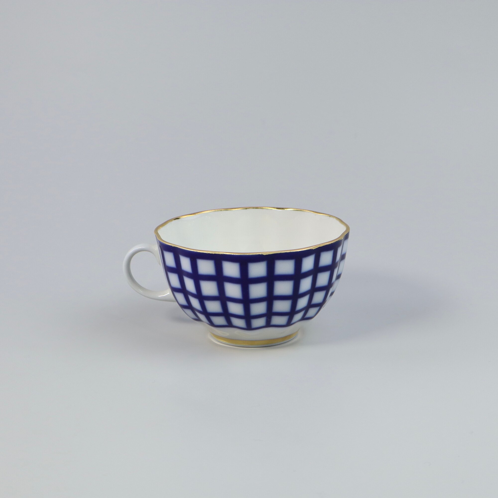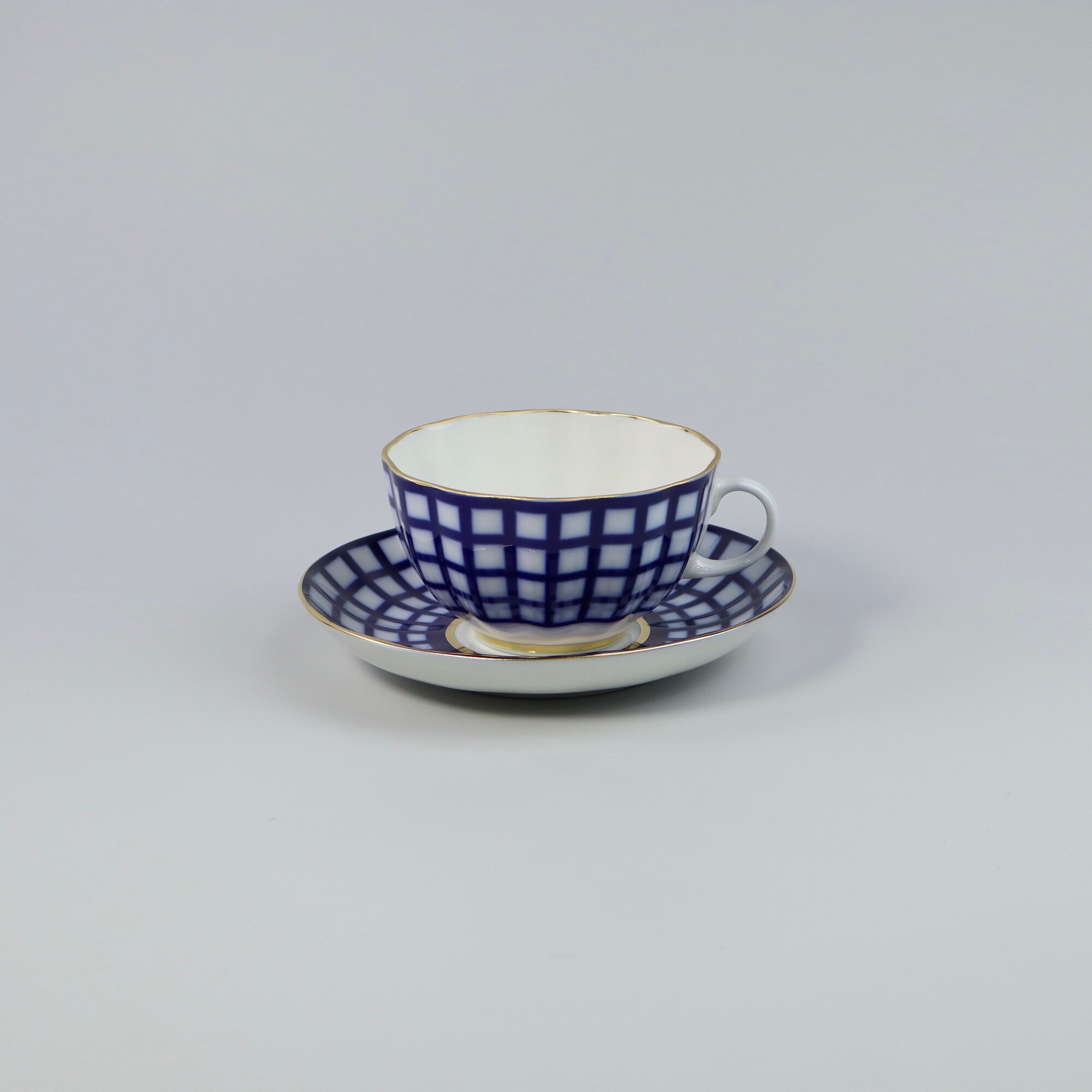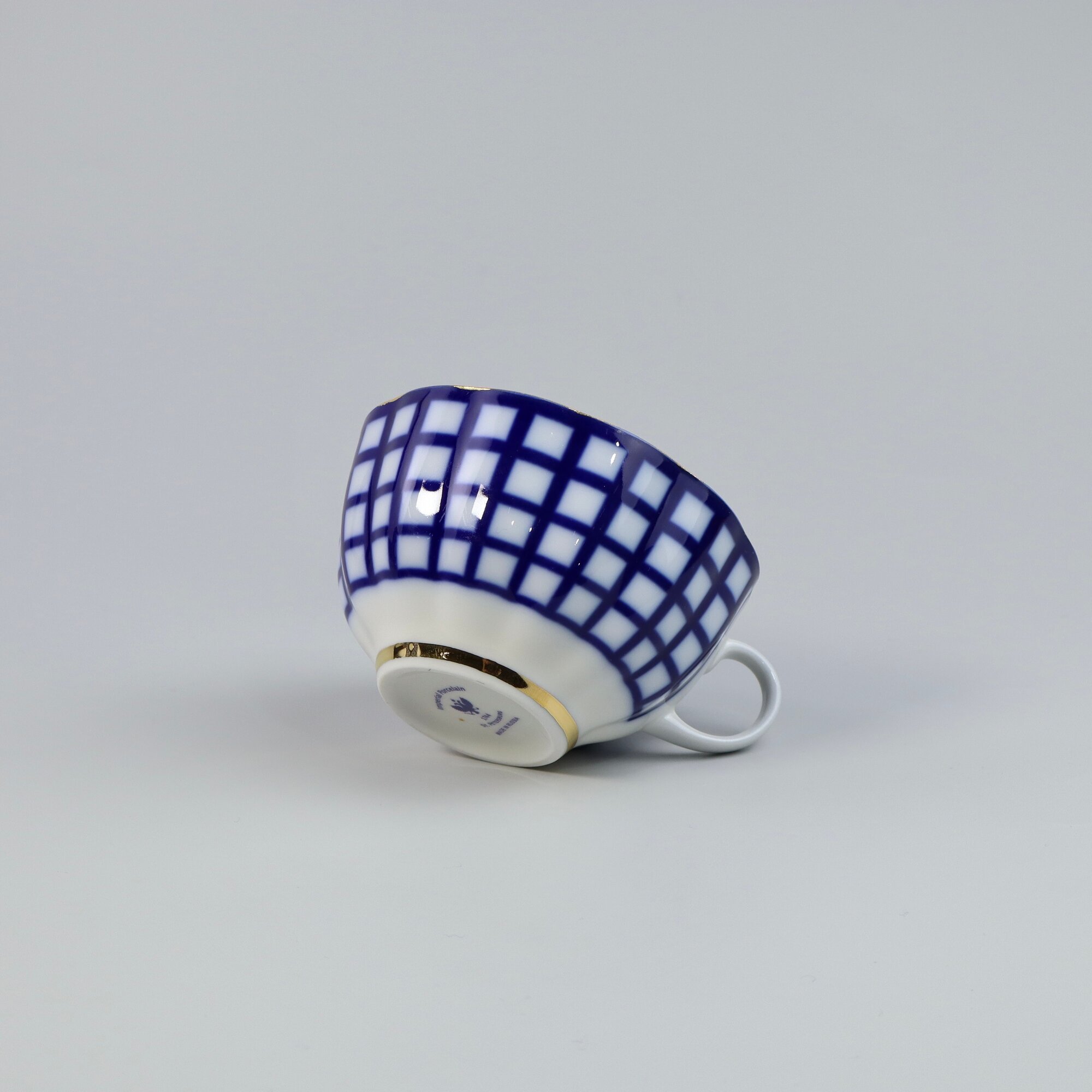 Купить Чайная пара. Форма "Тюльпан", рисунок "Кобальтовая клетка". Твердый фарфор. 250 мл. Императорский фарфоровый завод ИФЗ ЛФЗ