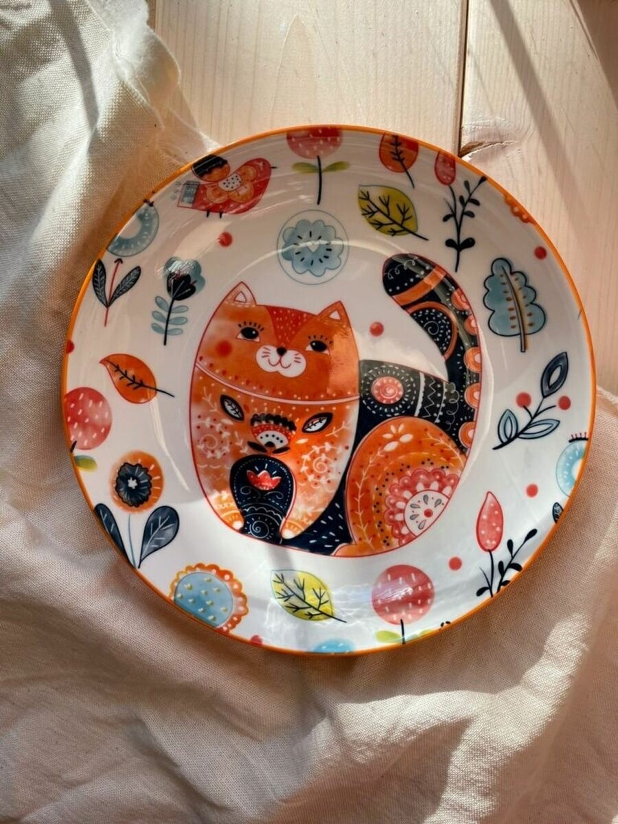 Тарелка обеденная с хюгге-котом интересное:
