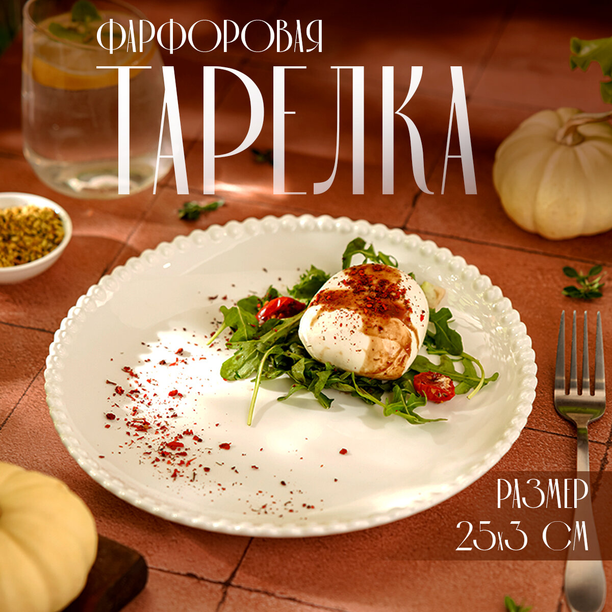 Тарелка фарфоровая обеденная Magistro «Лакомка», d=25 см, цвет белый интересное: