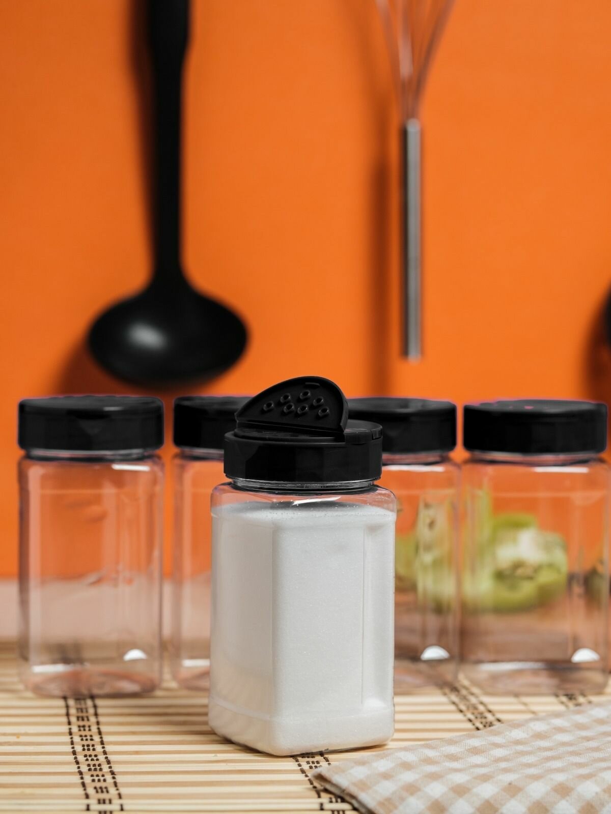 Контейнер для сыпучих специй с наклейками 360 мл 24 шт, крышки с дозатором в комплекте
