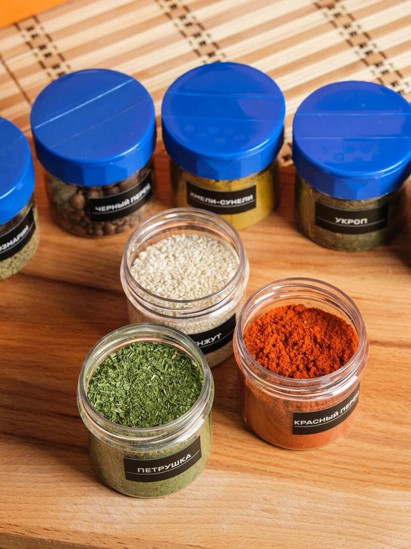 Банки для хранения специй и приправ 150 мл 6 шт, крышки с наклейками в комплекте