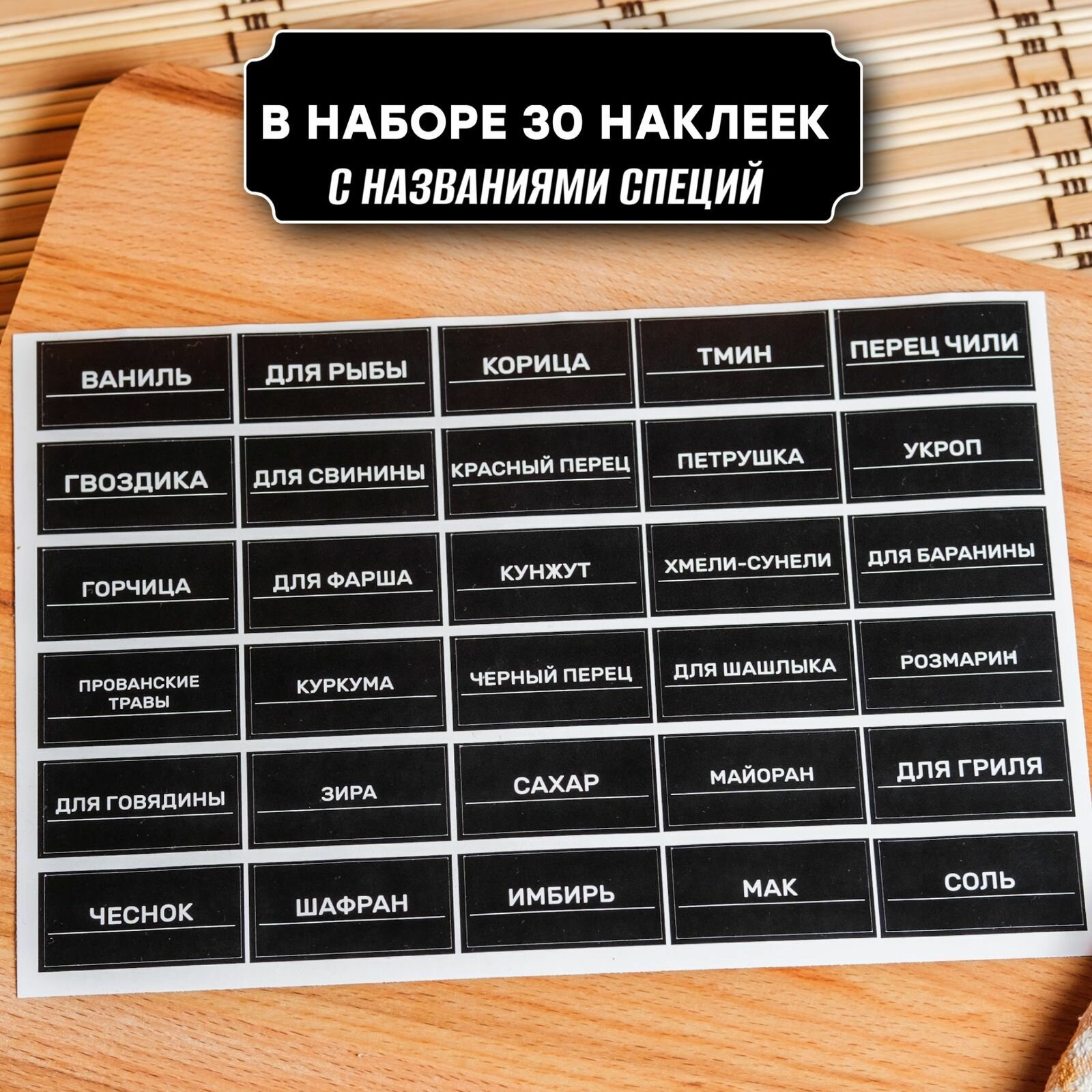 Банка для сыпучих специй и приправ 150 мл 30 штук, наклейки и крышки в комплекте