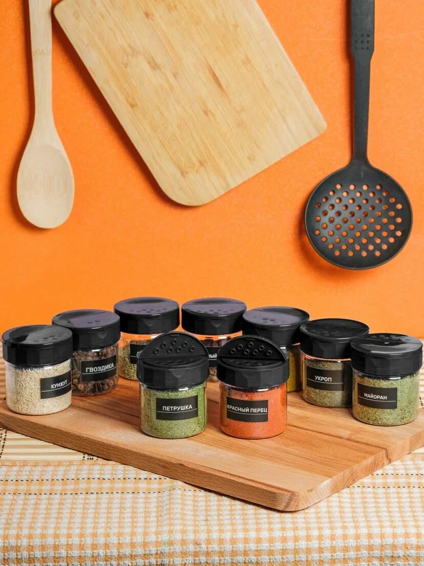 Баночки для сыпучих специй 150 мл 9 штук, наклейки и крышки в комплекте
