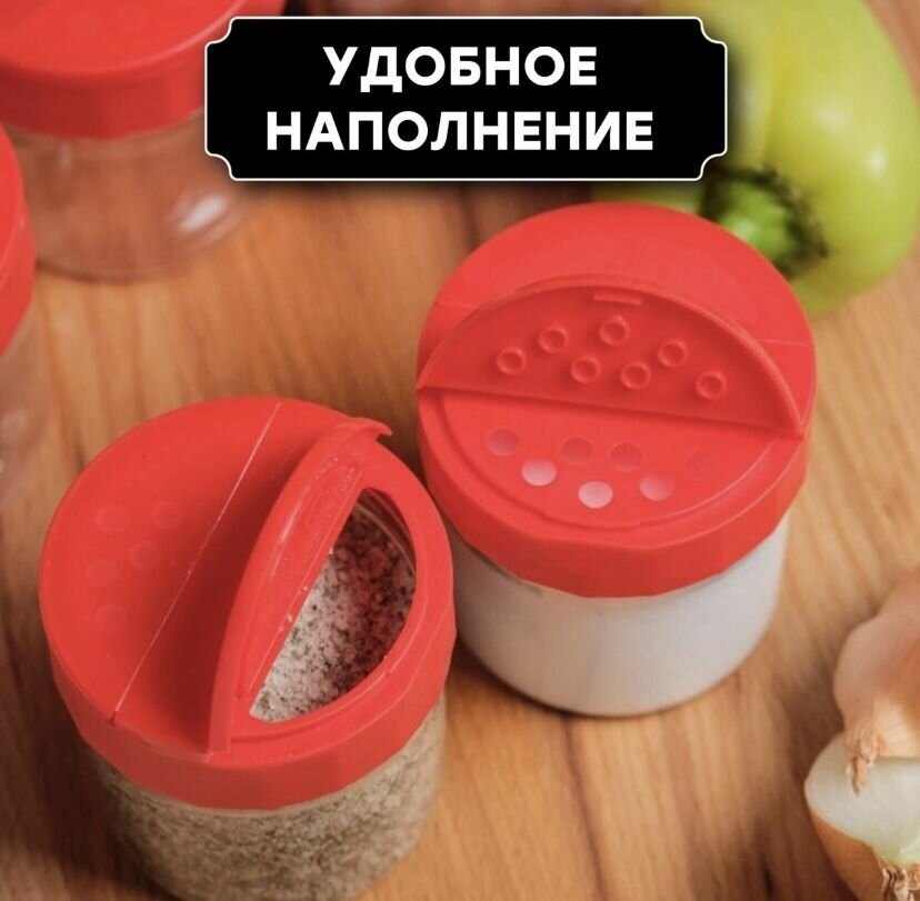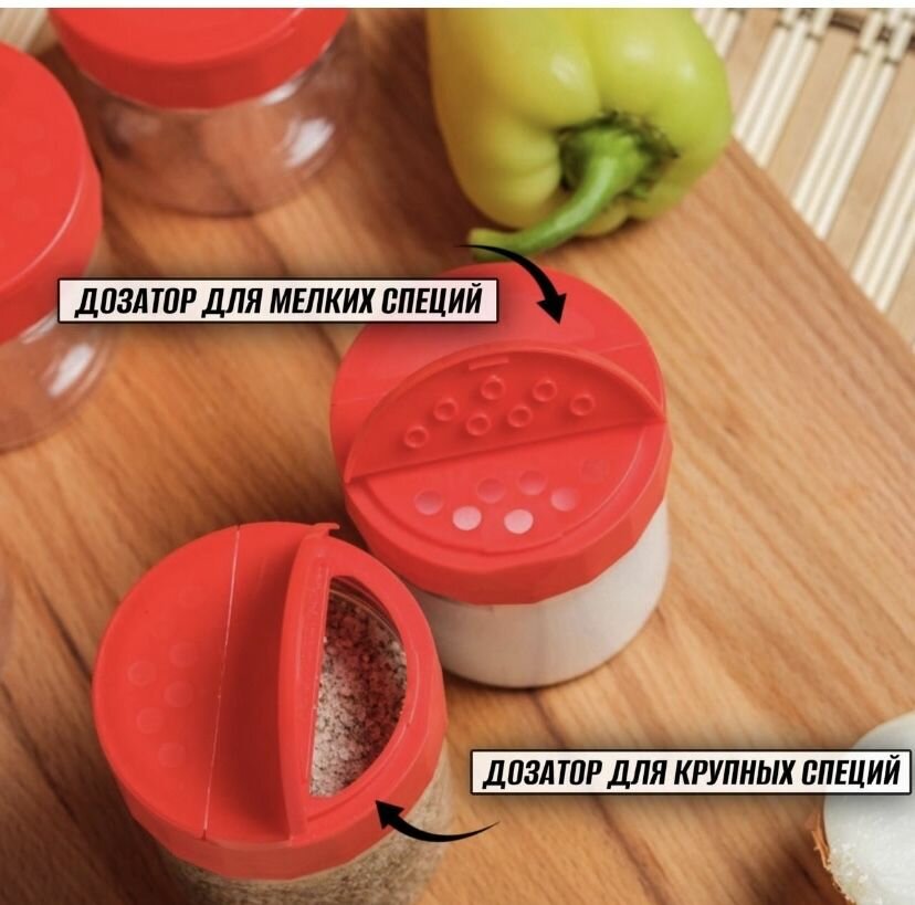 Баночка для специй и приправ с наклейками 360 мл 6 шт, ( красные крышки с дозатором в комплекте )