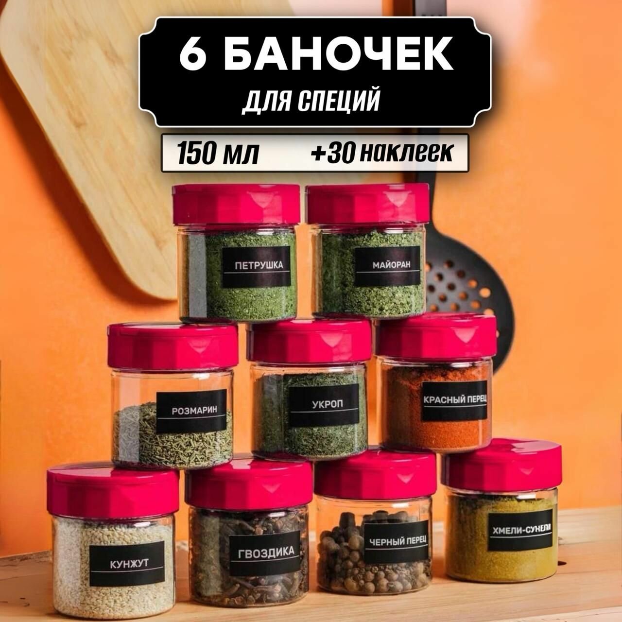 СохранитьБанки для хранения специй и приправ 150 мл 6 шт, крышки с наклейками в комплекте интересное: